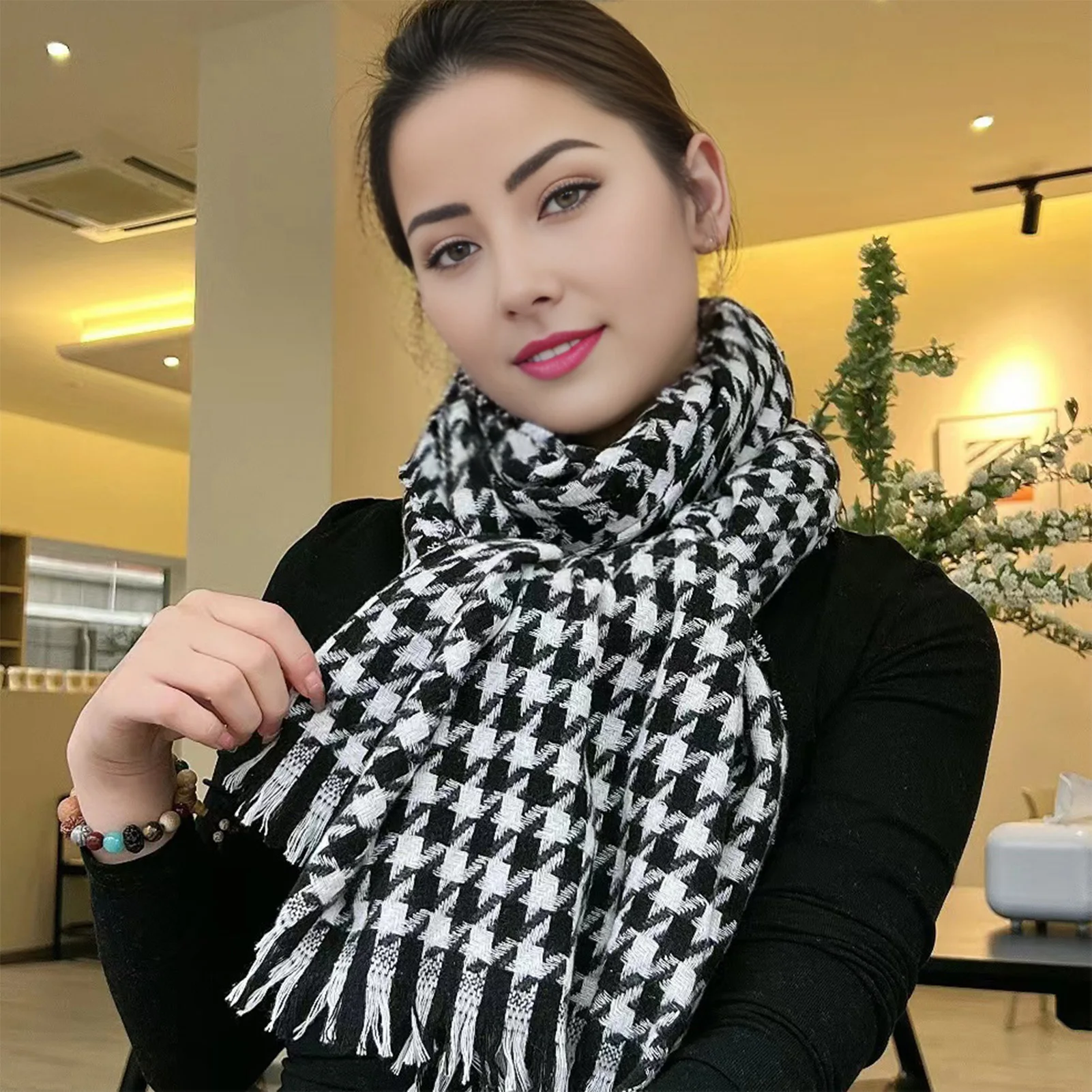 Plaid Pattern Design: Our women's warm scarves feature a stylish plaid pattern design, adding a touch of elegance to your winter outfit. Stay fashionable and cozy at the same time.