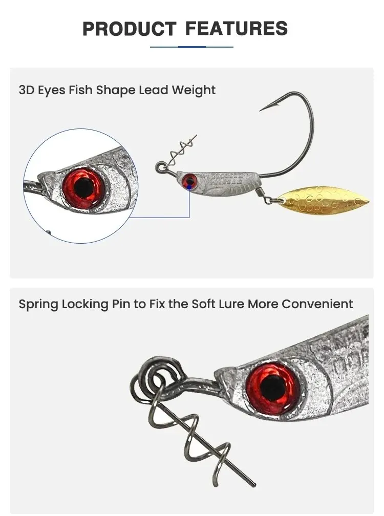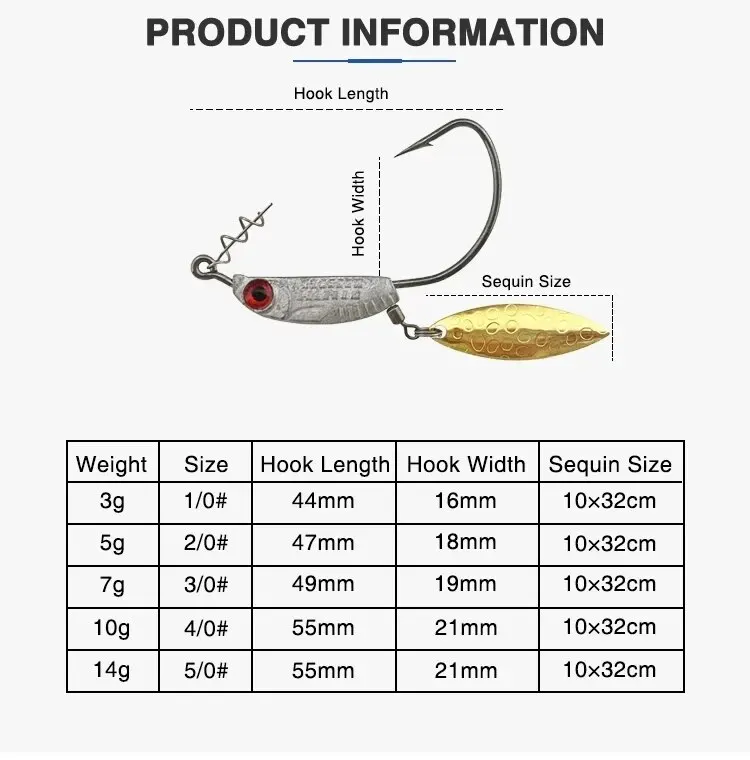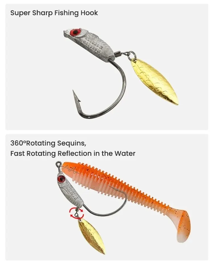 BURLE 4,5G 5,5G 7,2G Shad Head Shape Hook Anzuelos de pesca compensados con anzuelo de manivela de plomo Plus Lentejuelas Anzuelo único de vientre ancho