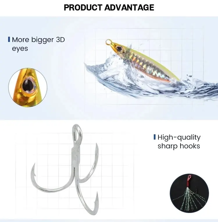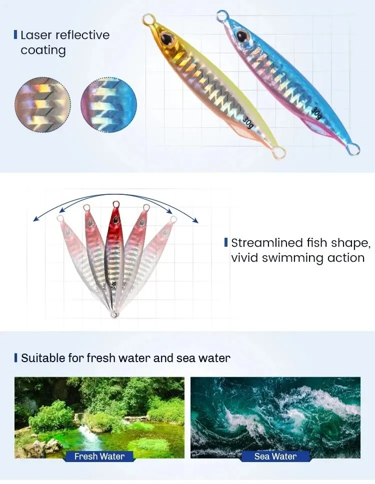 • Saltado rápido :A pesar de su diseño de cuchillo de mar, este señuelo de pesca tiene una alta propensión a saltar, lo que atrae a los peces de manera efectiva.