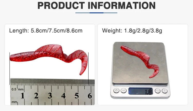 • Peso de 1.8g y 5.8cm/3.8g y 8.6cm :Con un peso de 1.8g y tamaños de 5.8cm/3.8g y 8.6cm, este señuelo de pesca es fácil de manejar y usar en diferentes situaciones.