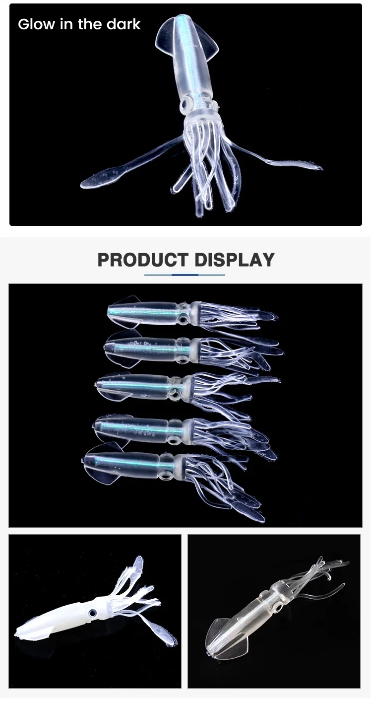 BURLE Señuelos suaves luminosos Mezcla de pulpo engrasado Faldas suaves Señuelos de calamar Plantilla de calamar suave artificial Señuelos de pesca personalizados