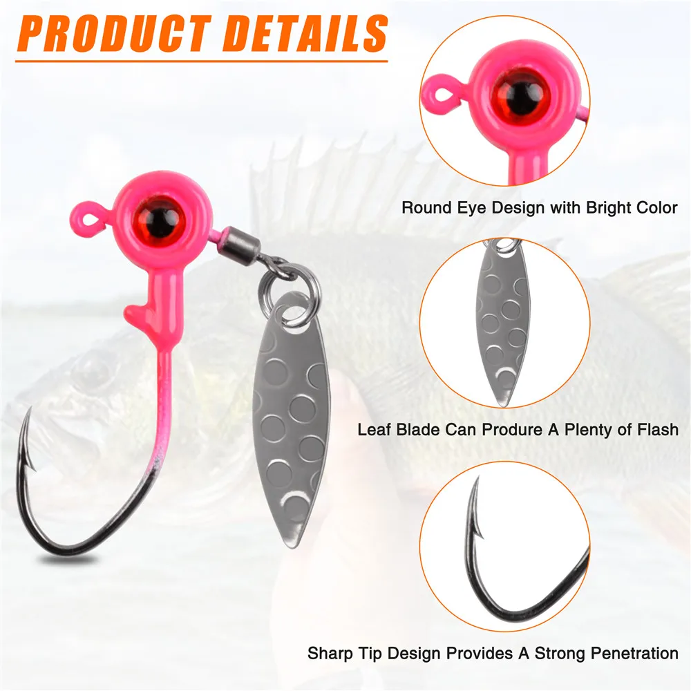 Gancho de cabeza Jig con cuchillas de sauce giratorias, hace que el ruido y el columpio sean realistas en el agua, más atractivos para los peces.