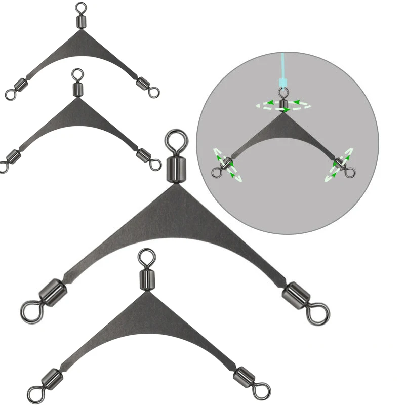 10Pcs/lot 3 Way Stainless Steel Fishing Jig Head Swivels Fishing Rolling Pole Swivel Fishing Tackle Triangle Fishing Connector