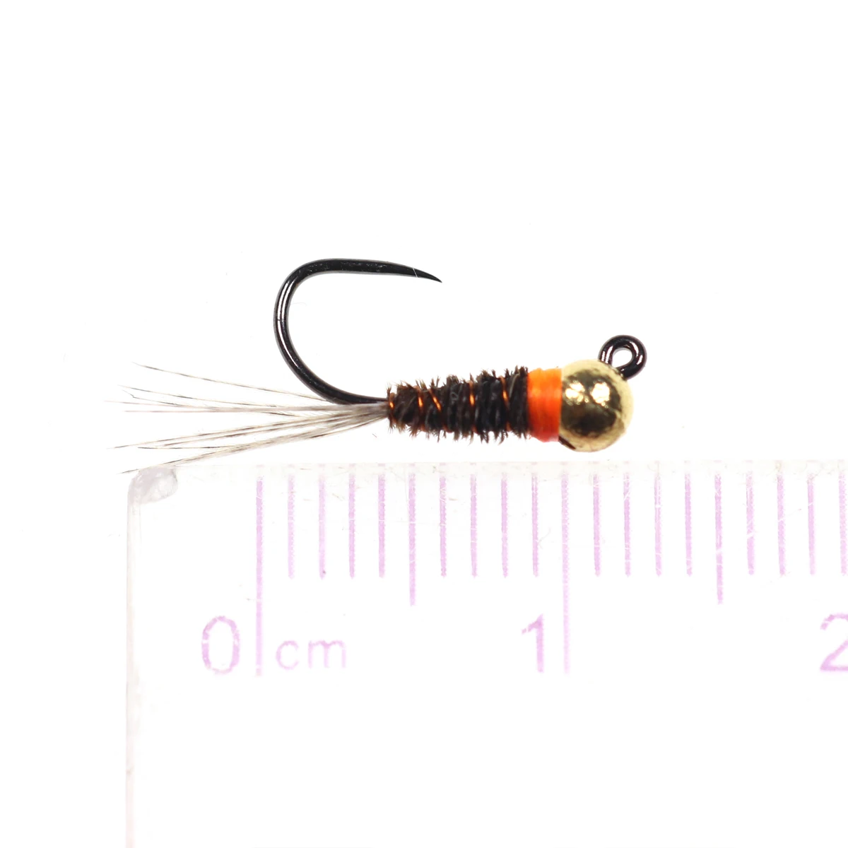 Con cabeza de tungsteno, lo que permite que la mosca pase por la columna de agua más rápido que otras ninfas del mismo peso y tamaño;