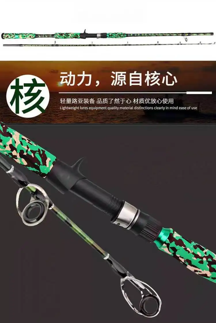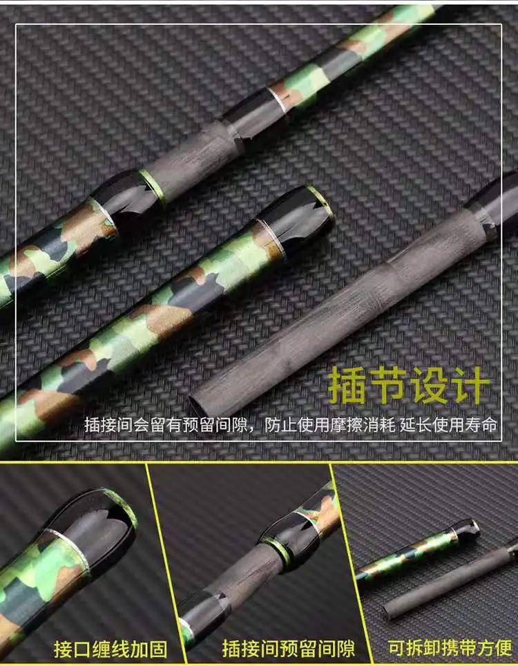 Cabeza de serpiente ZZ70, punta de carga de 7000g, diámetro Caña de pescar de fibra de carbono, 2,4mm, 16kg, 2,1 m, 2,28 m, 2,4 m, Camuflaje verde o negro