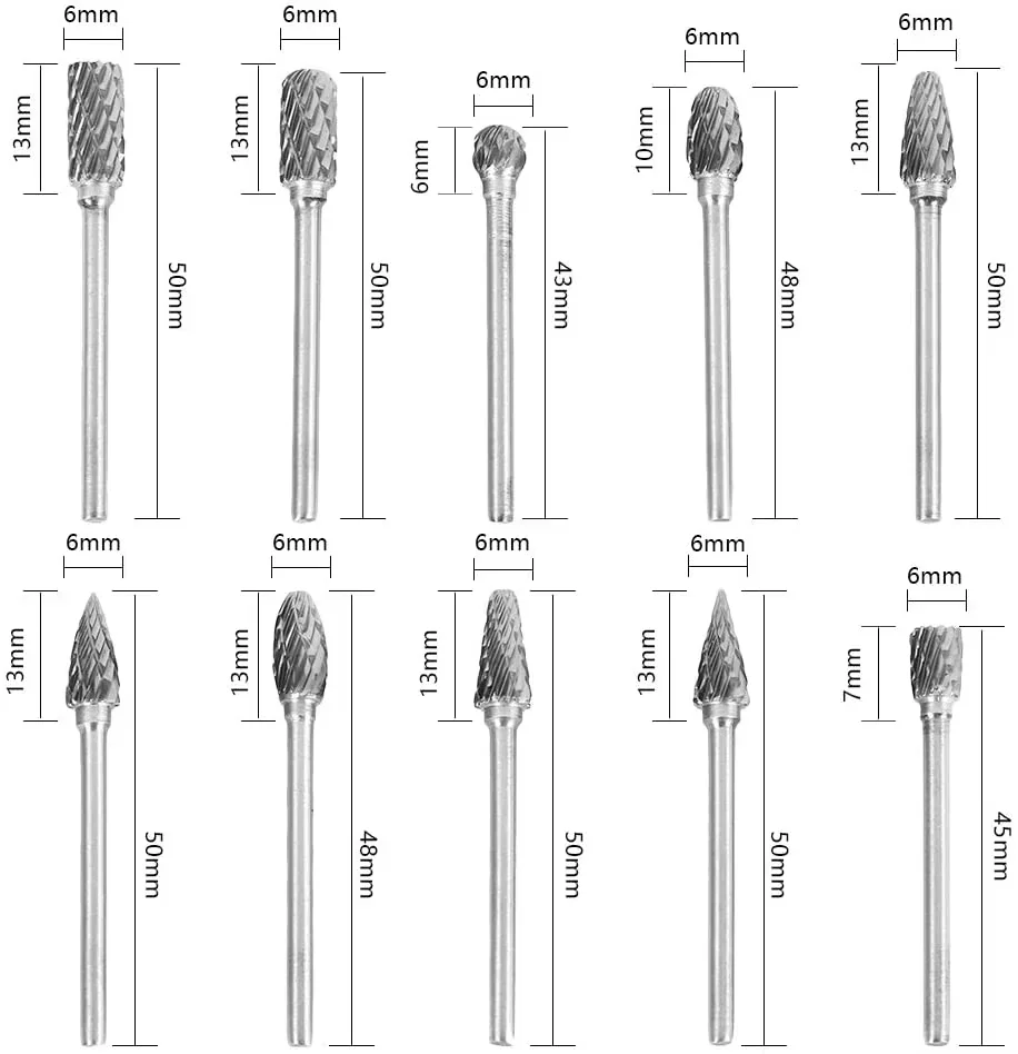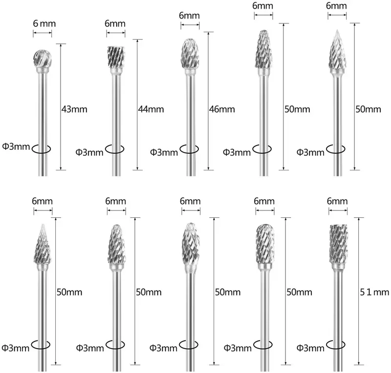 MaterialCabeza de rebaba de carburo 100% virgen y vástago de acero inoxidable.