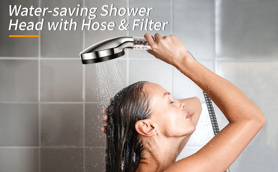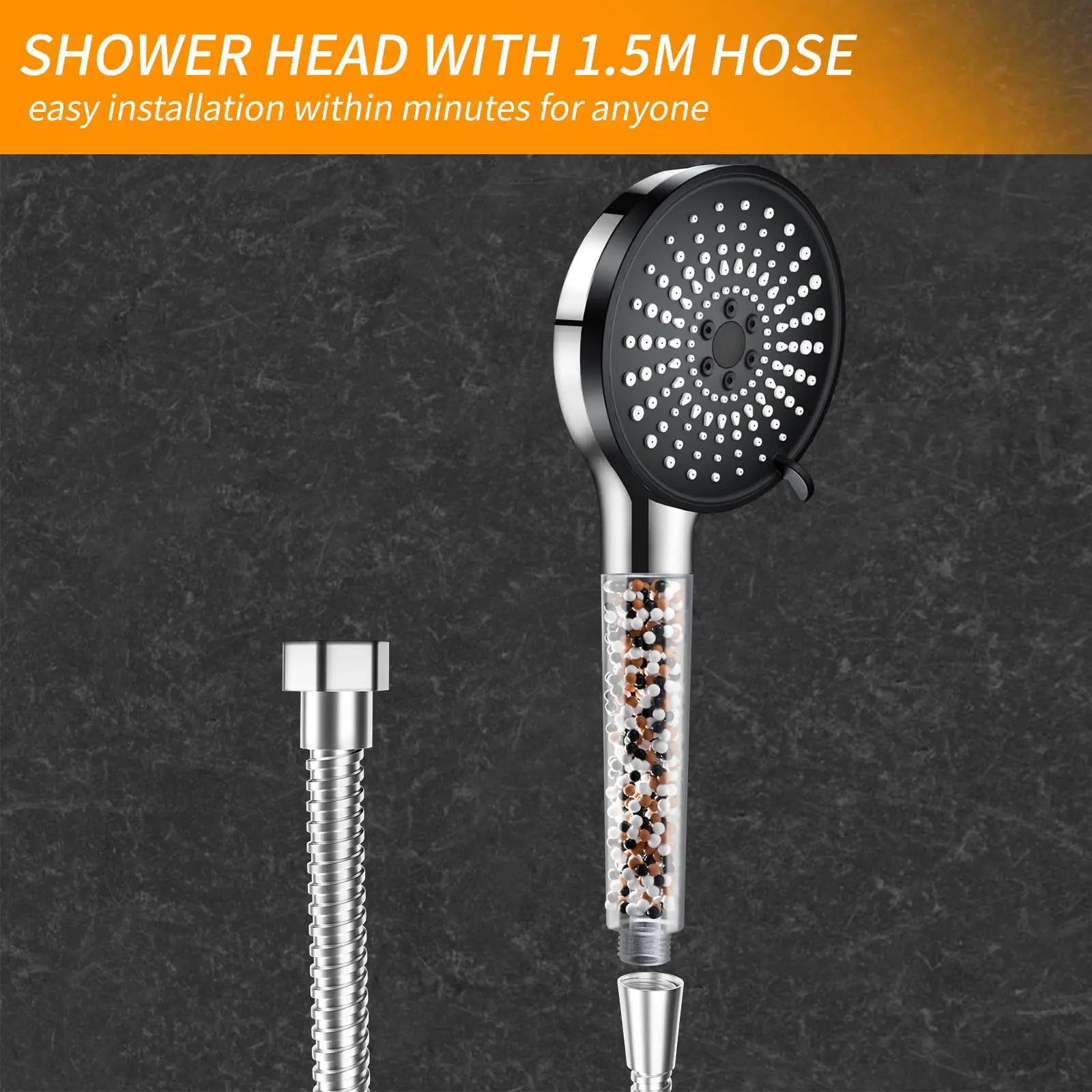 Cabezal de ducha con refuerzo de filtro de mano, ajuste de 5 velocidades, juego de ducha suavizante de agua dura de iones negativos para baño