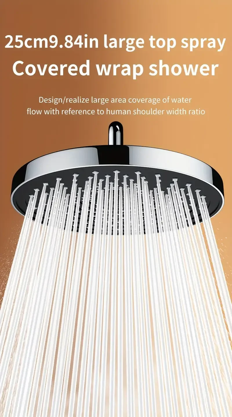 Cabezal de ducha de refuerzo de gran volumen de agua con pulverizador superior de 25cm, cabezal de ducha de baño de un solo cabezal presurizado, conjunto para el hogar