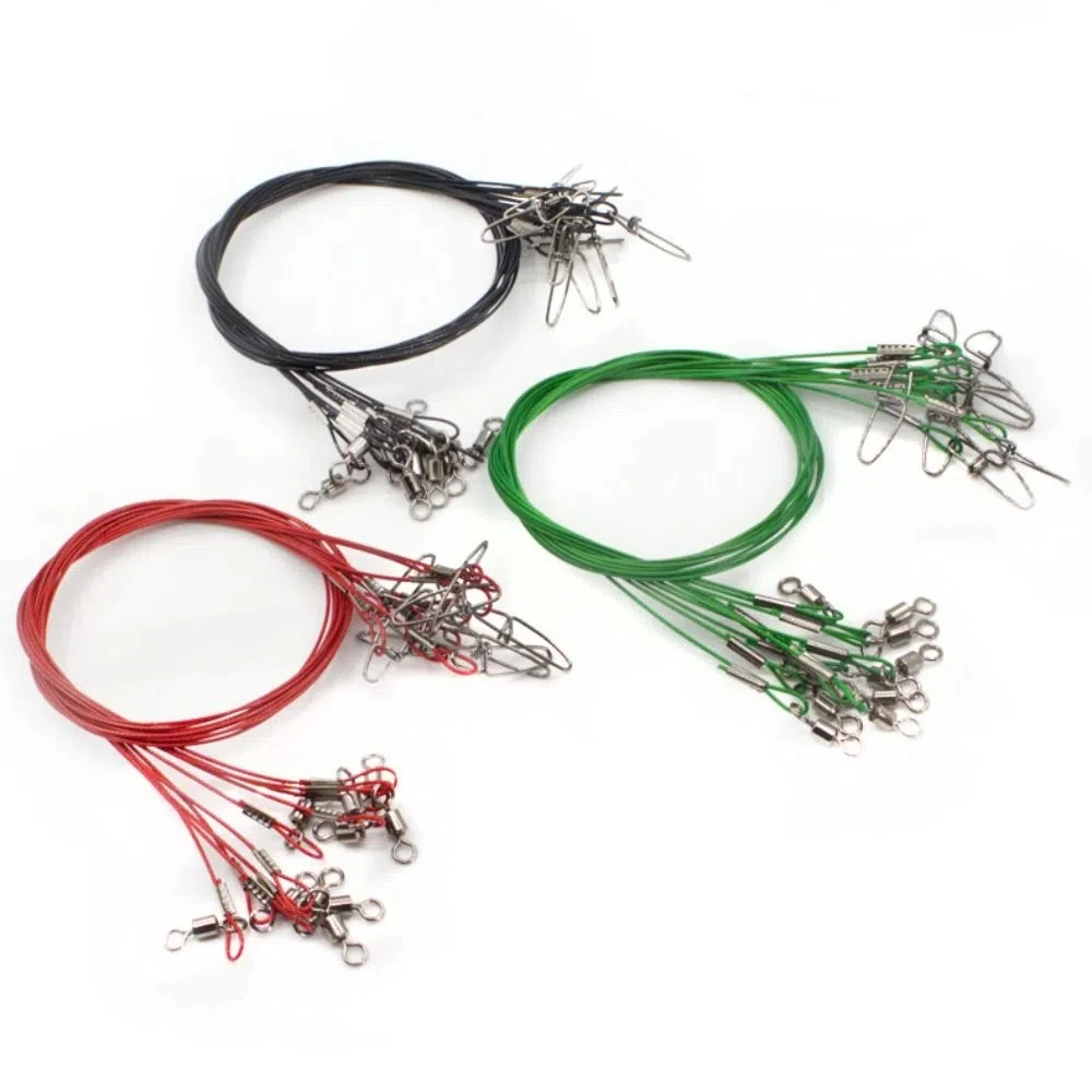 Nombre: alambre de acero para pesca en el mar. Material: Acero. Longitud: 50cm(19.69in). Color: rojo/Verde/negro. Embalaje: Alambre de acero para pesca en el Mar de 10 piezas. Características: 1. Alambre de acero inoxidable de 7 hebras, alta resistencia y durabilidad. Conecte con el anzuelo de pesca y evite que la línea de pesca se rompa con los peces. 2. Suave y anticorrosión, perfecto para usar en agua salada. 3. Tensión 150LB, barril giratorio en la parte inferior y giratorio a presión en la parte superior. Línea líder de línea de pesca resistente para atún Big game Jig Rigs leader line. Nota: Puede haber algunos errores de medición, no se preocupe. Gracias.