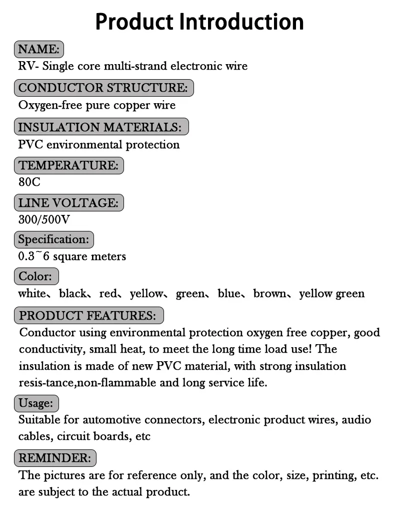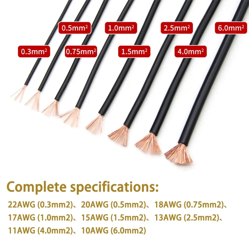 Cable de cobre RV de 1 ~ 20m, Cable de extensión eléctrica de PVC, Cable de construcción de conexión multihebra de un solo núcleo para Motor de cables de Audio de coche