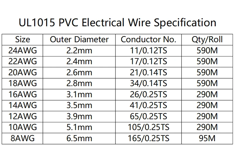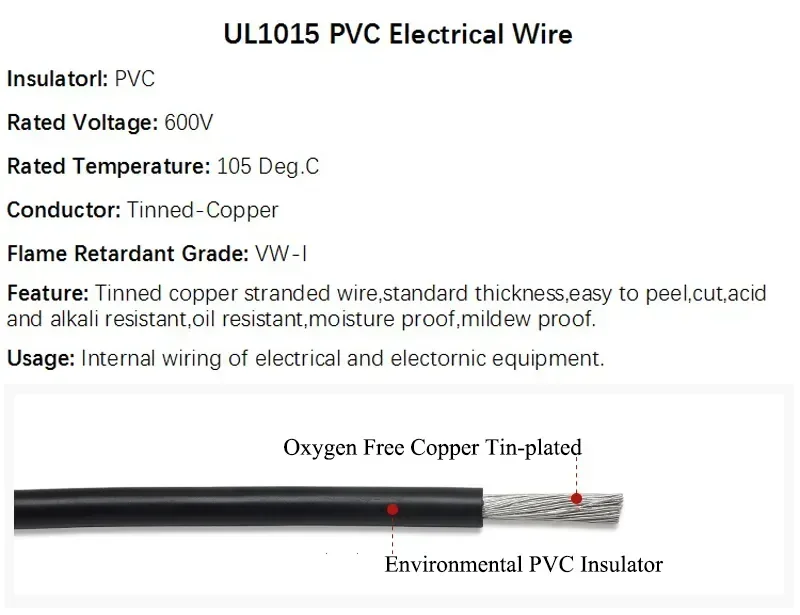 Cable eléctrico UL1015 de 2/5m con aislamiento de PVC, 24, 22, 20, 18, 16, 14, 12, 10, 8 AWG, 600V, iluminación de lámpara, Cable de cobre de línea LED artesanal