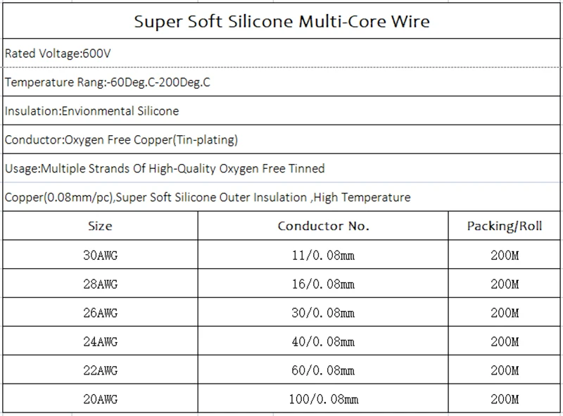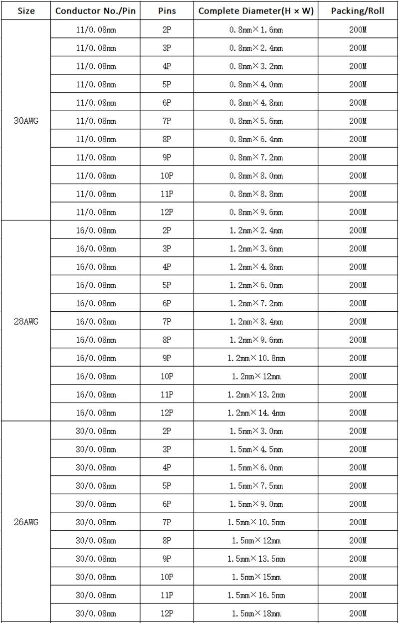 Cable paralelo de silicona de 3/5/10M 30 28 26 24 22 20AWG multinúcleo 2P 4P 6P 8P 10P Cable de cobre flexible resistente a altas temperaturas