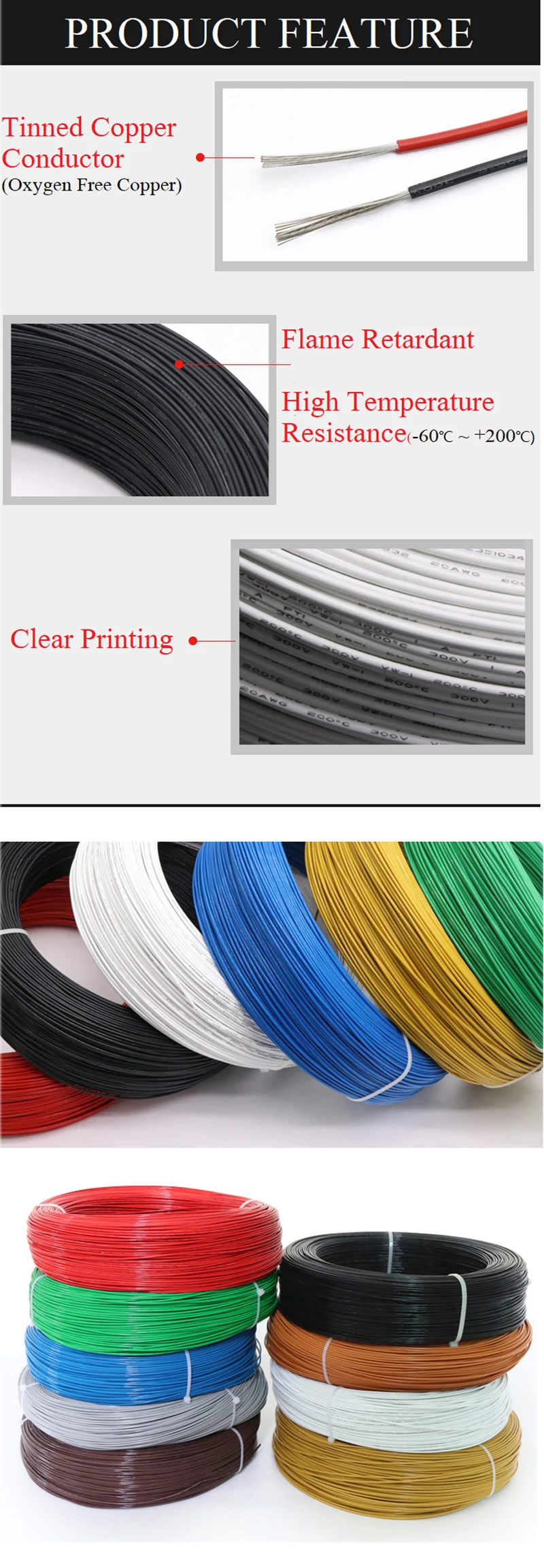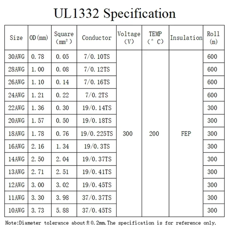 Cable de PTFE UL1332 para impresora 3D, Cable de electrones de alta temperatura, aislamiento de plástico FEP, 28/26/24/22/20/18/16/14/13/12/10AWG, 5/10M