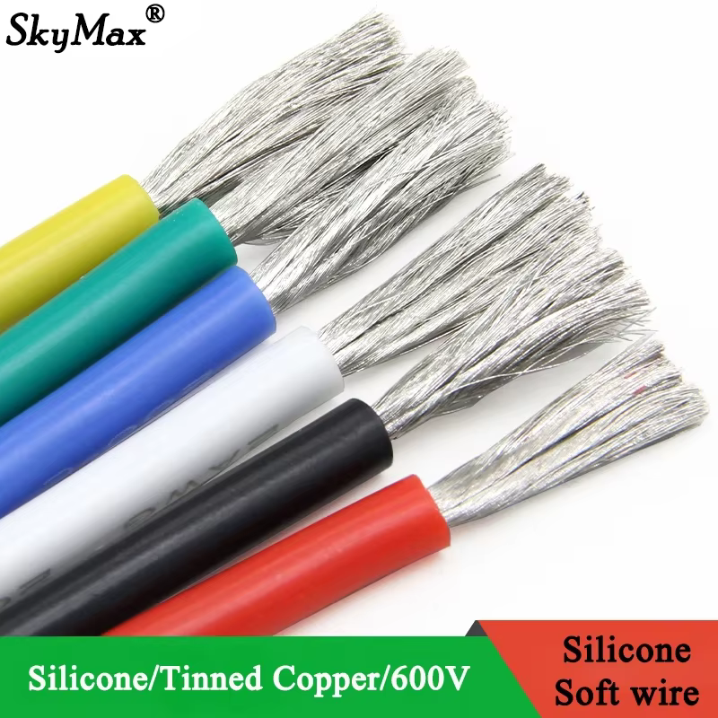 Cable de silicona suave resistente al calor, Cable de 1 a 10M, 16, 15, 14, 13, 12, 11, 10, 9, 8, 7, 6, 4, 2AWG, línea de cobre Flexible de batería de alta temperatura
