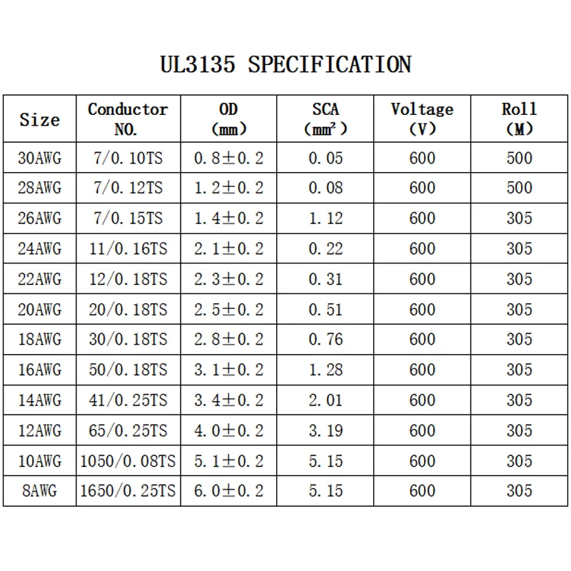 Variante: Color:White Specification:18AWG Length:5 Meters