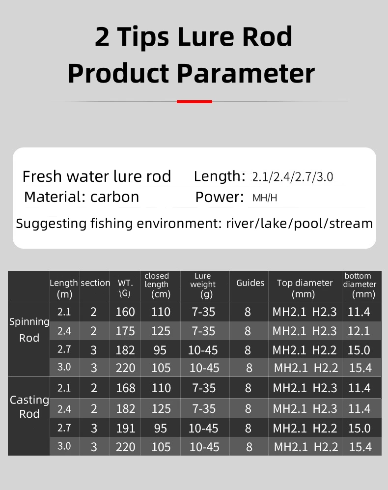 2, secciones: 2 secciones para varilla de 2,1 y 2,4 m;