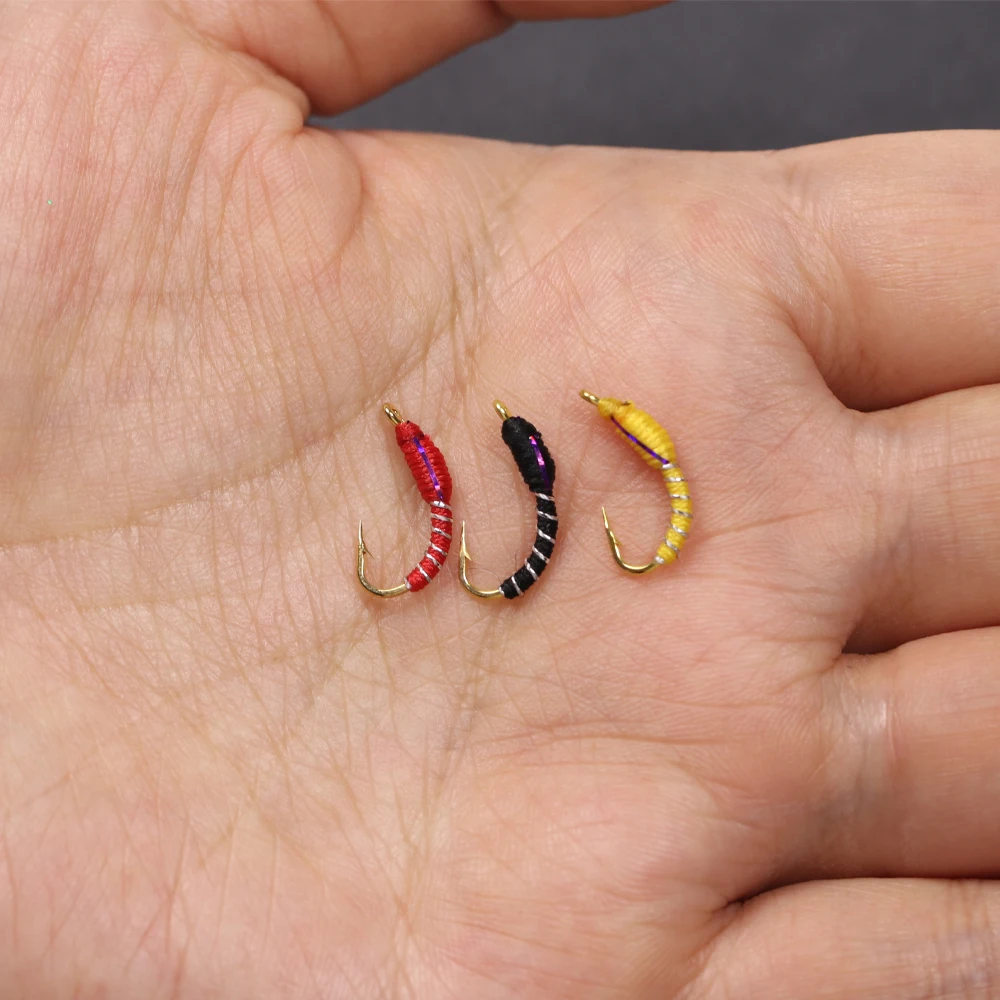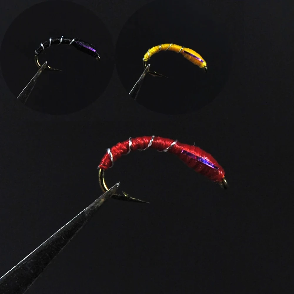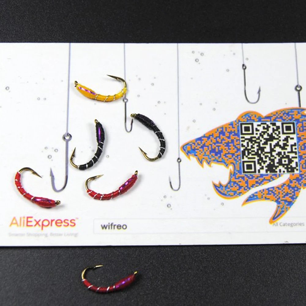 [12PCS] 12 # Caddis Larva Chironomid Midge Pupa Zumbador Cebra Ninfa Trucha Moscas Anzuelo de pesca con mosca Negro Rojo Naranja