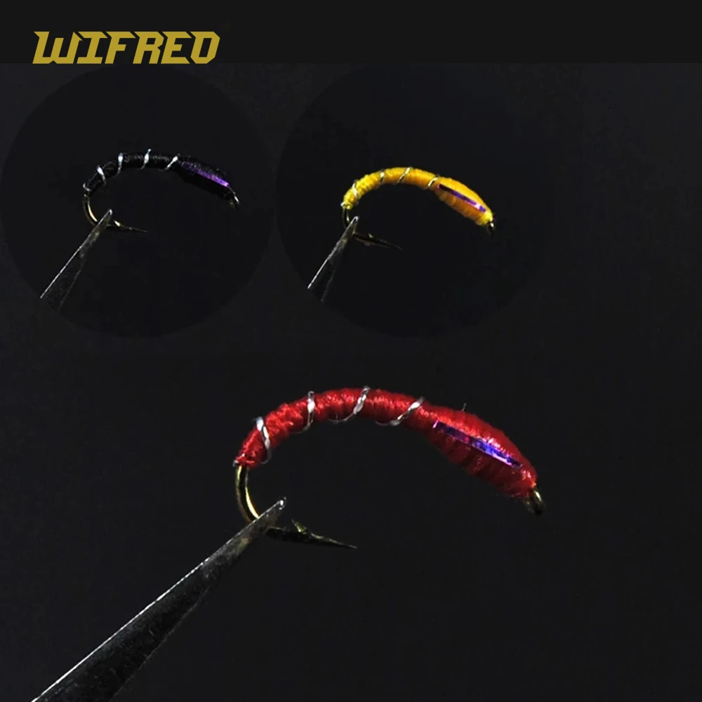 [12PCS] 12 # Caddis Larva Chironomid Midge Pupa Zumbador Cebra Ninfa Trucha Moscas Anzuelo de pesca con mosca Negro Rojo Naranja
