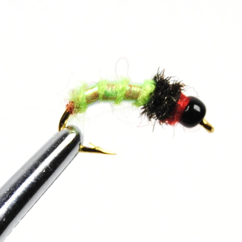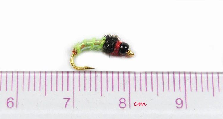 Caddis-moscas de pesca con mosca, punto caliente, Roca, gusano, negro/gráfico, 10 Uds.