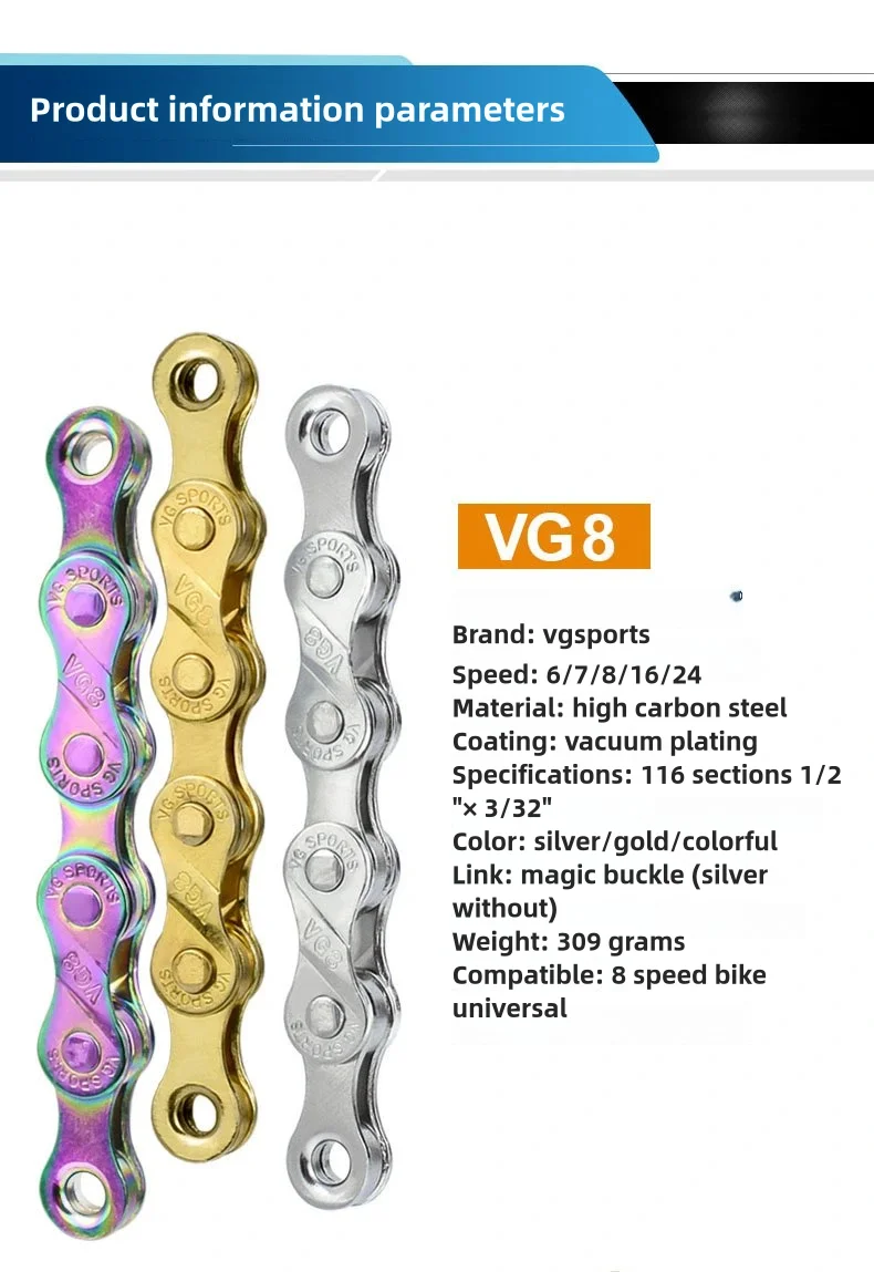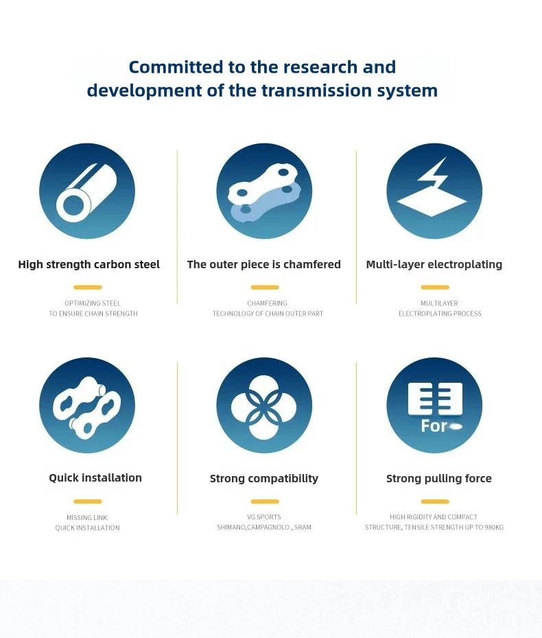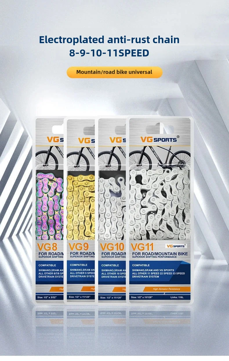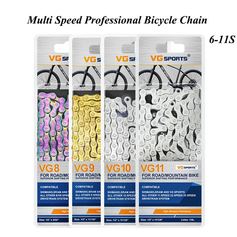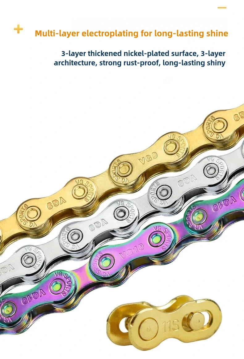 Cadena de bicicleta de 6/7/8/9/10/11 velocidades, cadena profesional de acero al carbono de alta resistencia, ligera, no hueca