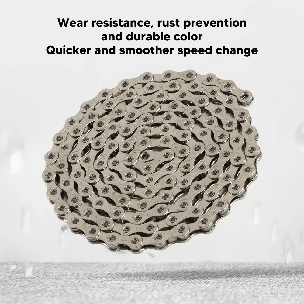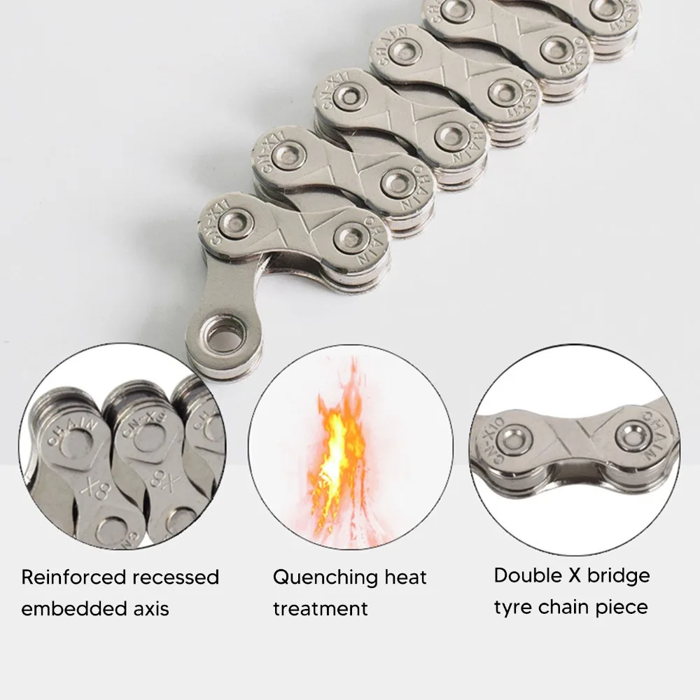 Agile Speed Change: This mountain bike chain uses double X bridge type chain, which can improve the tensile and torsional strength of the chain, making the speed change agiler and smoother.