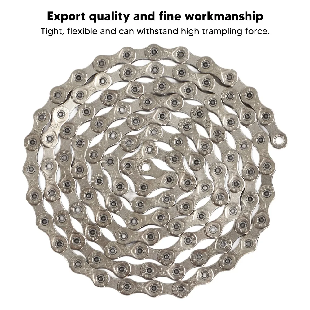 Fine Workmanship: The bike chain of export quality has been fully electroplated and quenched to enhance the wear resistance. The surface is treated with oxidation prevention, which can maintain a lasting shiny silver color.