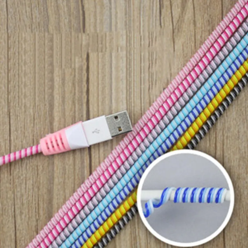 Cadena de bobinado para exteriores, soporte de Cable sólido de 60cm, TPU colorido, espiral, Cargador USB, Protector de Cable, organizador de viento