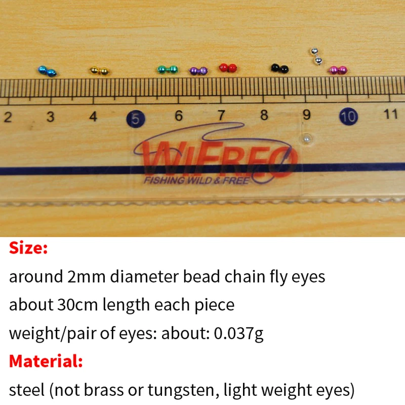 [2 2017] 30cm 2mm pequeño atado de moscas Cadena de cuentas ojos cadenas con mancuernas varios colores negro plata oro verde rojo