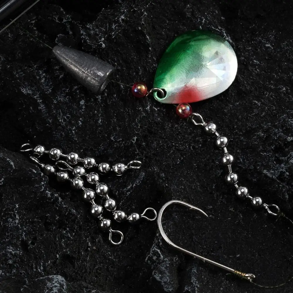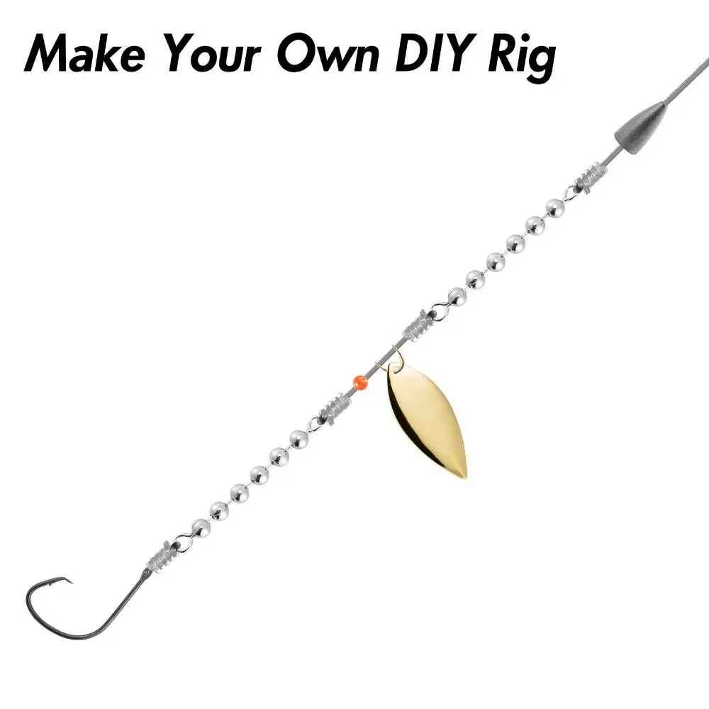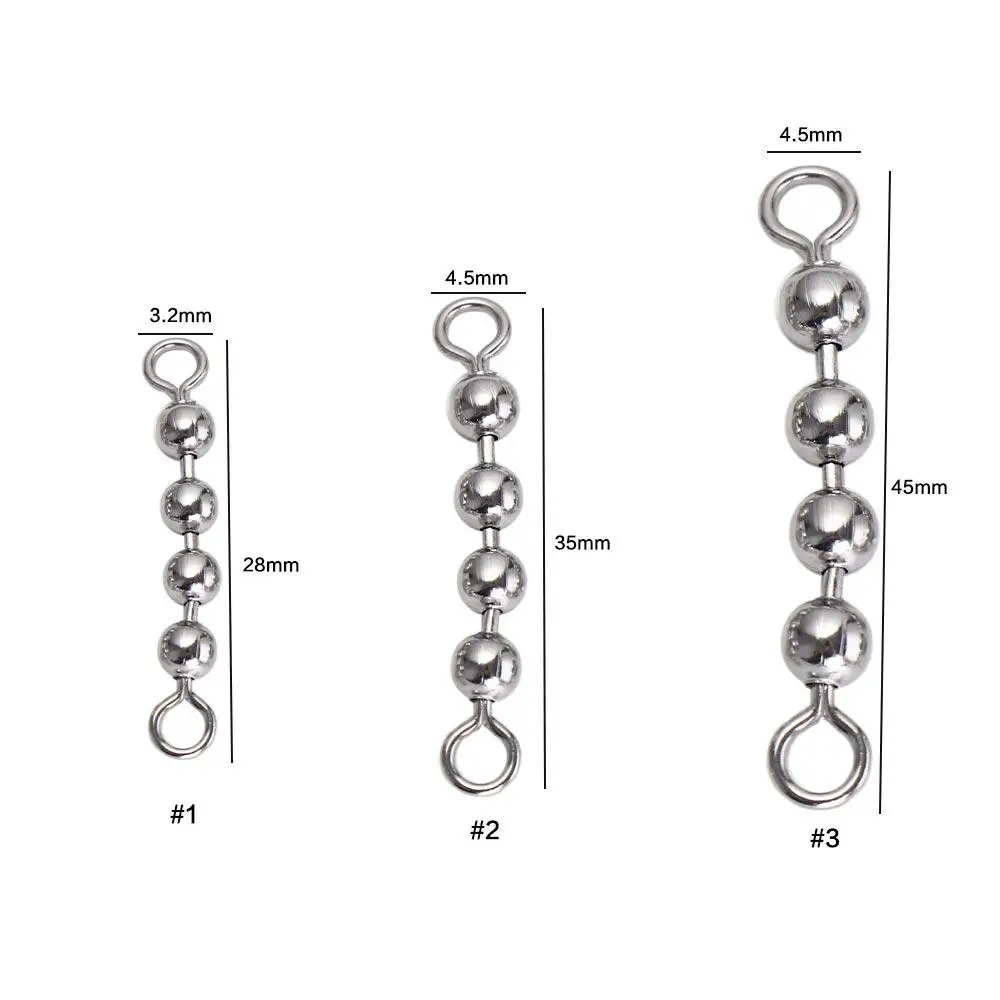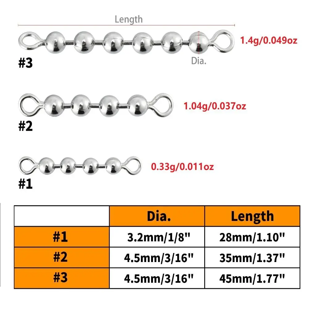 Los giratorios de cadena de cuentas están hechos de acero inoxidable con anillos de extremo de alambre redondo, por lo que se pueden usar en agua salada o dulce.