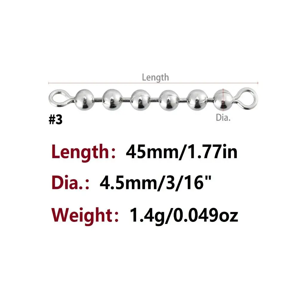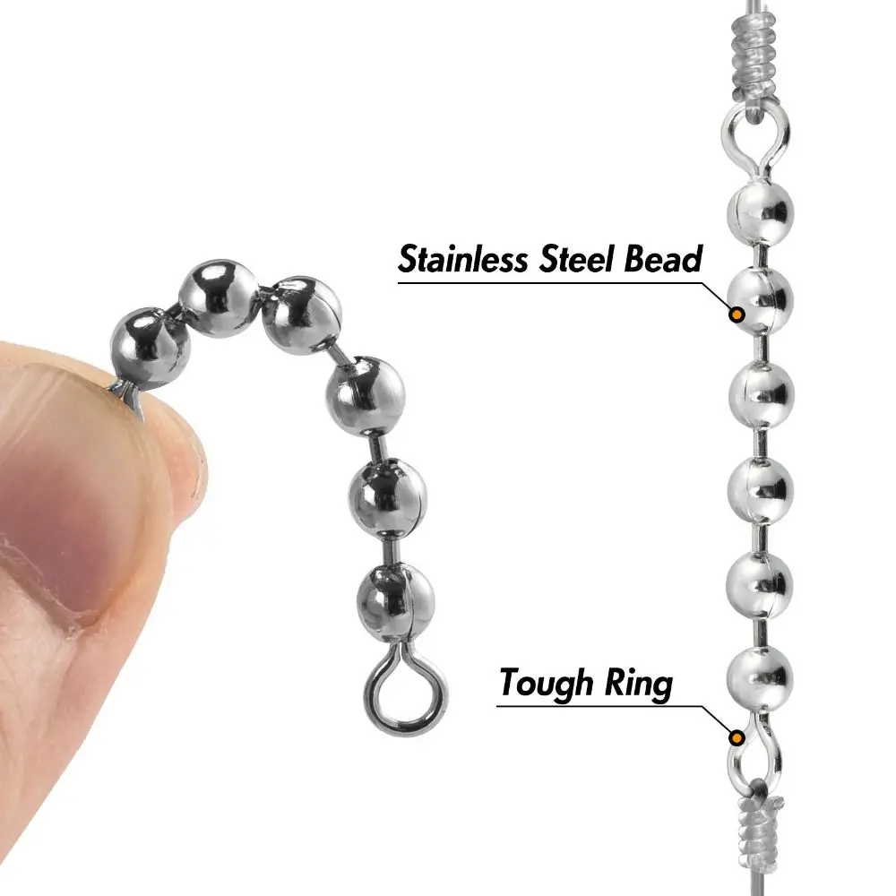 Bead chain swivels are made of stainless steel with round wire end rings, so it can be used in saltwater or freshwater.