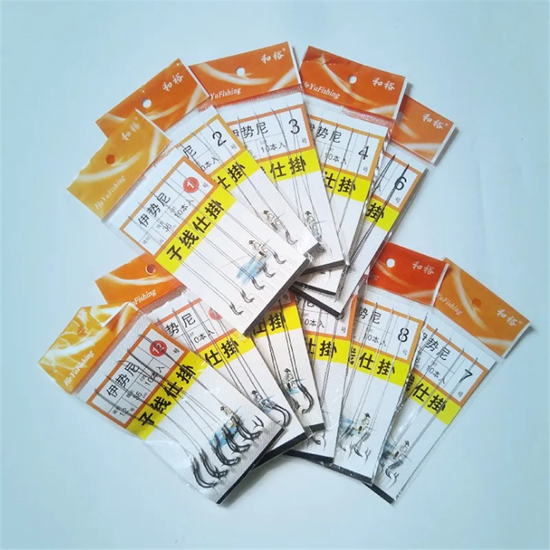Cadena de manivela de pesca de 10, serie japonesa 1 #-12 #, grupo de anzuelos, captura de agua dulce, aparejos Sabiki con púas, Color níquel negro único