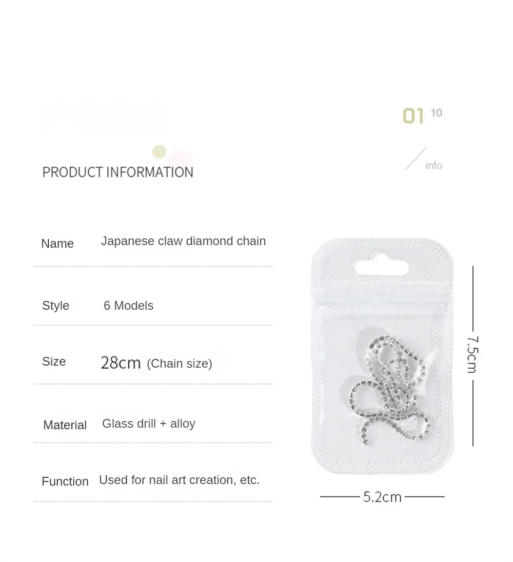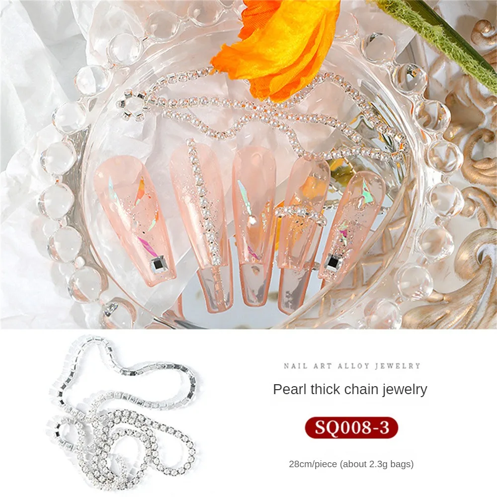 Nail Art Drill Chain Accesorios de diamantes de imitación Super Flash Pearl Silver Chain Drill Cuttable Decoración de uñas