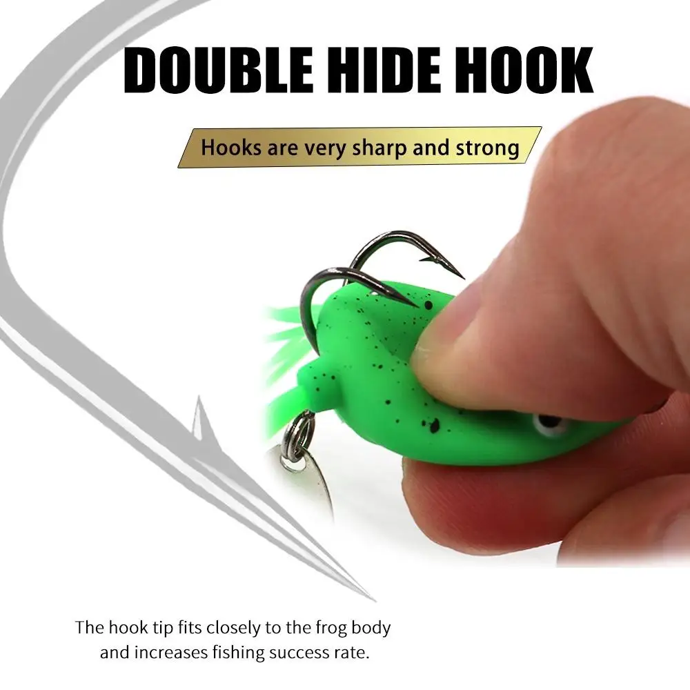 1.El cuerpo de la rana adopta tecnología de recubrimiento multicapa, material de goma, que es más suave, y el diseño de ojo de rana 3D es llamativo y realista, lo cual es muy atractivo para el pez objetivo.