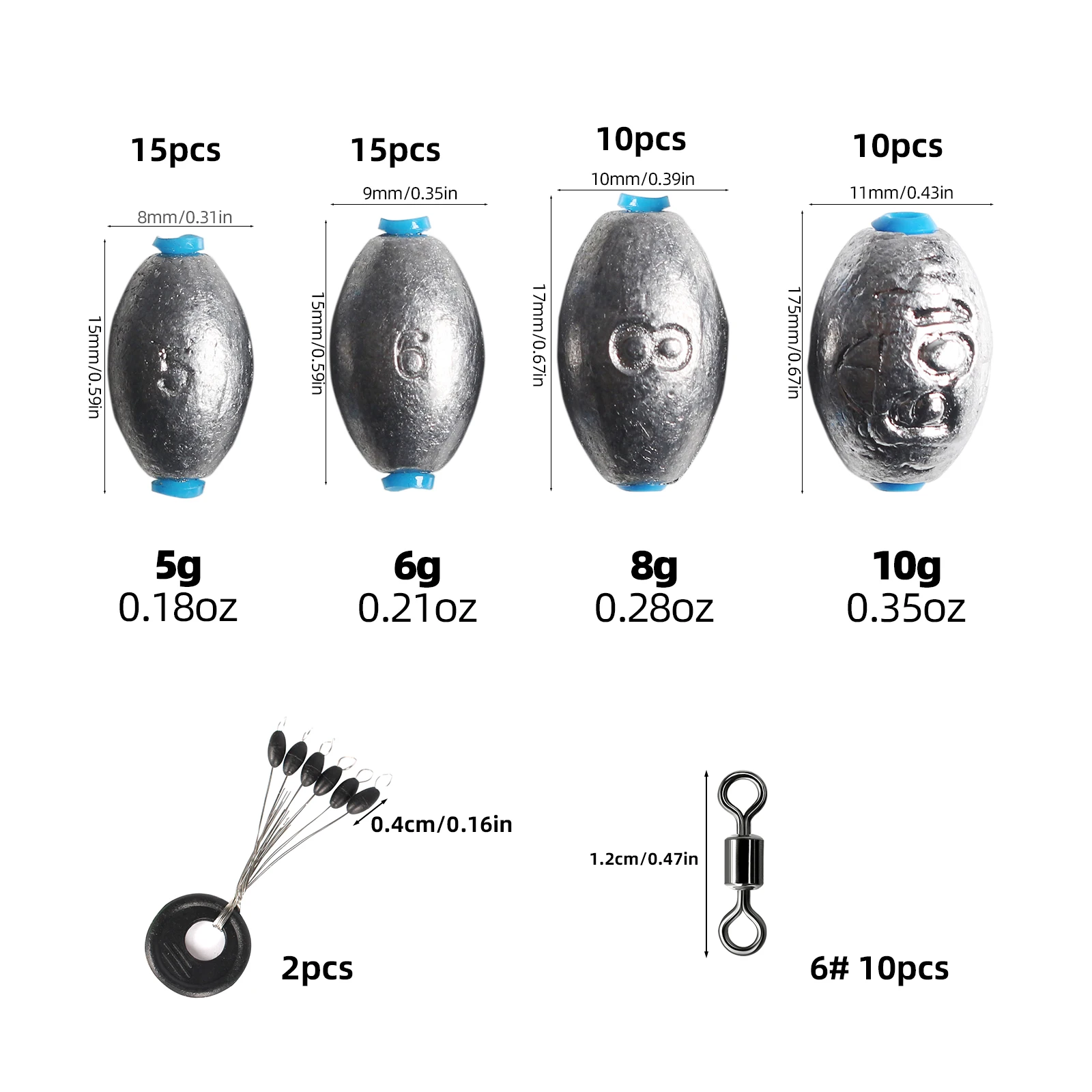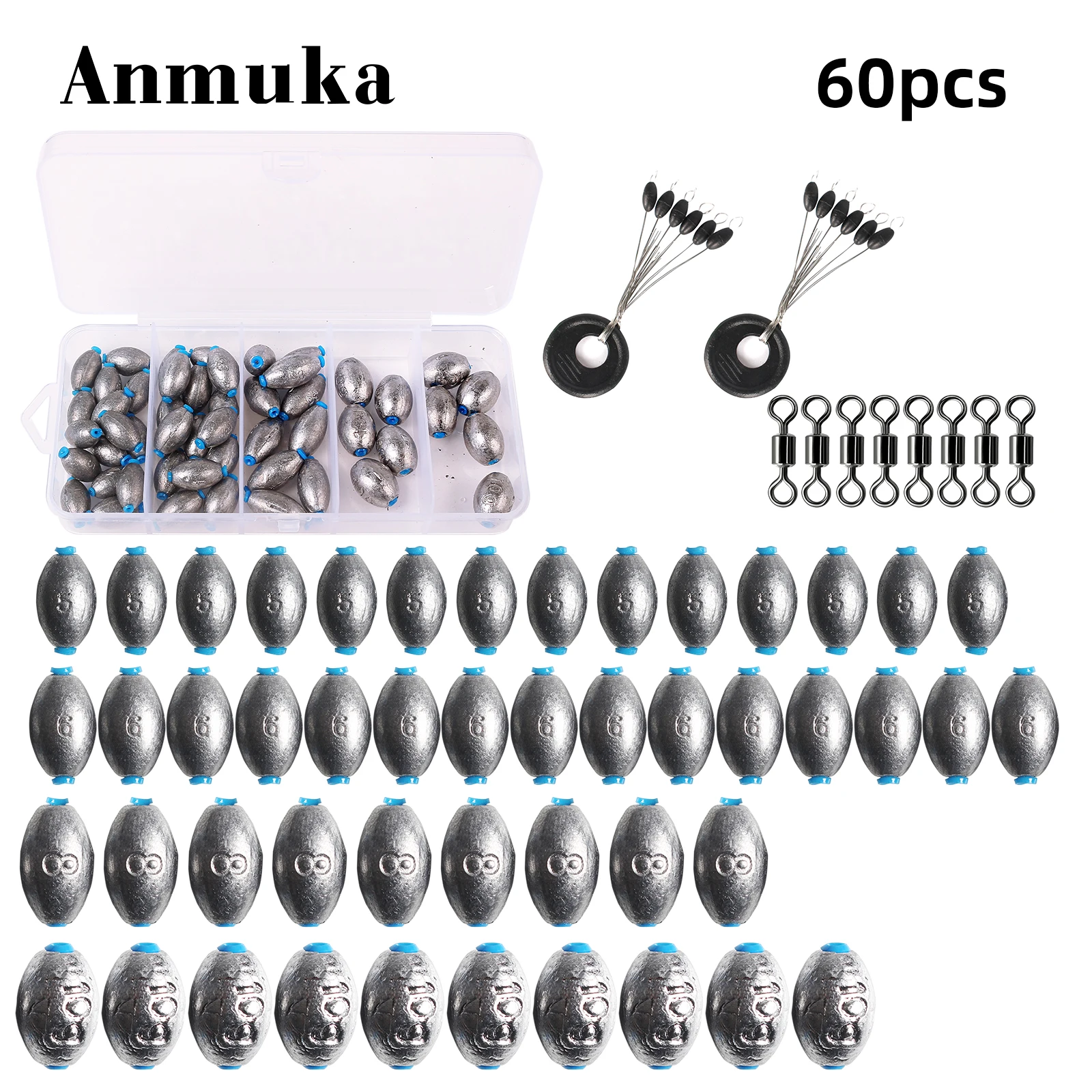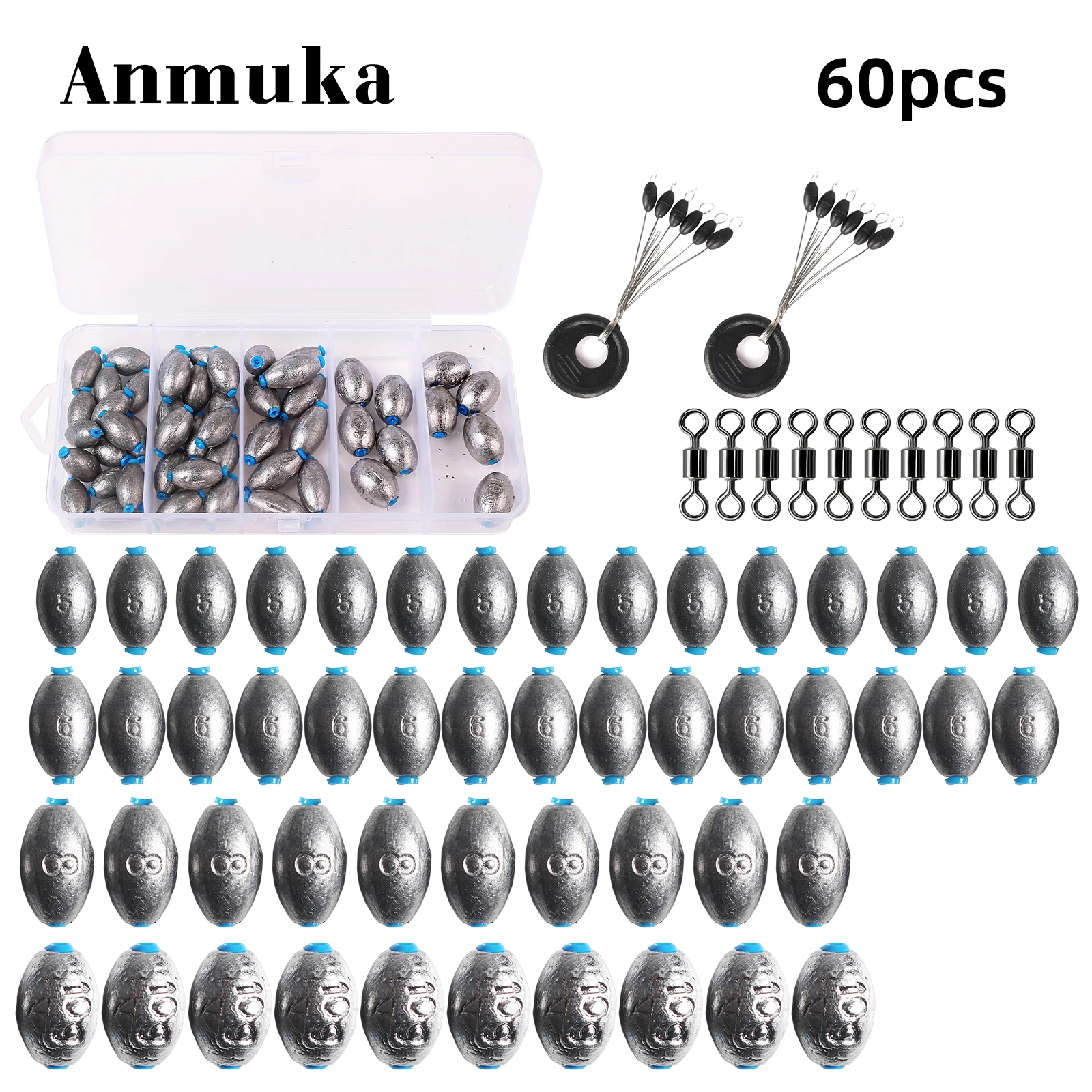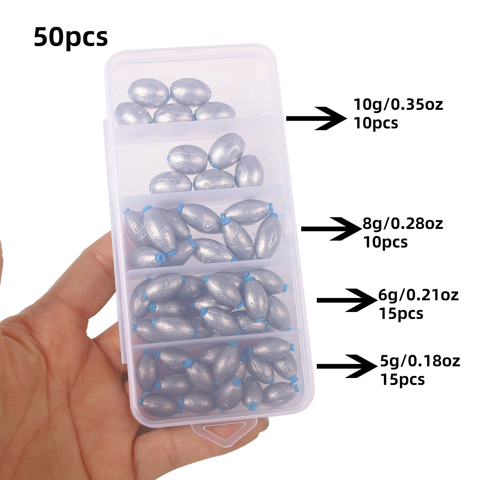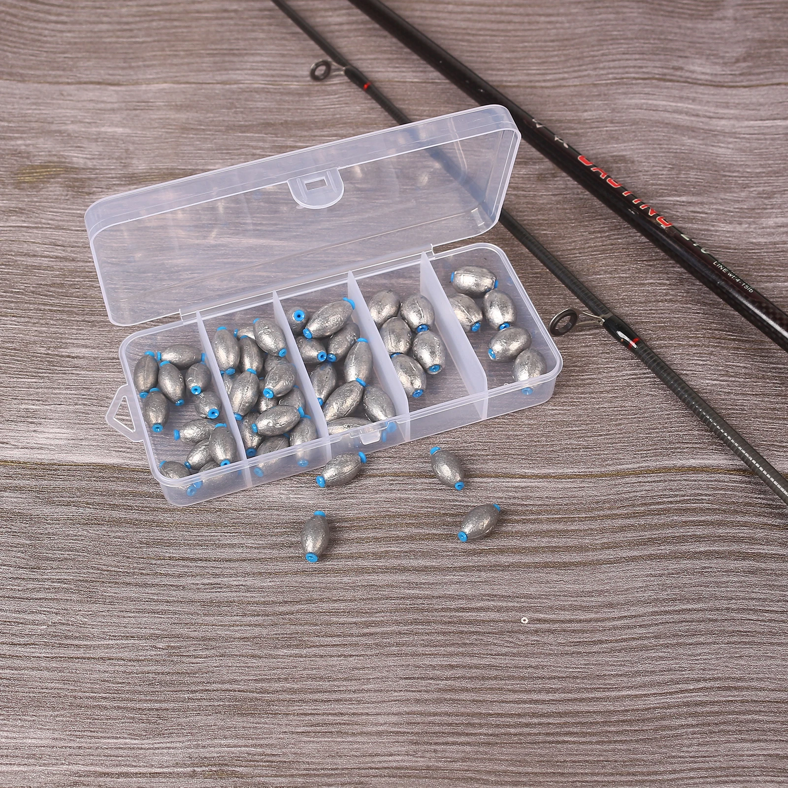 Caja de 60 uds., colgante de plomo abierto, balsa de pesca, juego de pesca, accesorios de válvula de puente, plomo de mordida rápida hueco, tipo oliva, corredor de carretera largo