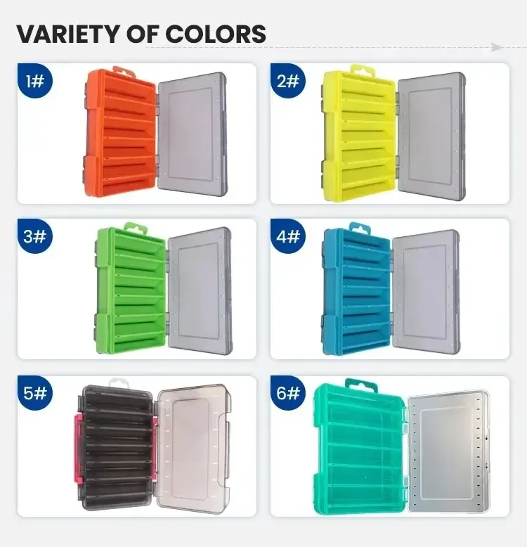 La calidad de estos productos no es cuestionable, estas cajas cumplen plenamente con lo que esperamos de ellas, pero es el texto del anuncio el que está incorrecto; no se trata de "cajas de madera en forma de U, cajas para camarones u otras", sino de cajas de plástico de doble cara para almacenar señuelos.