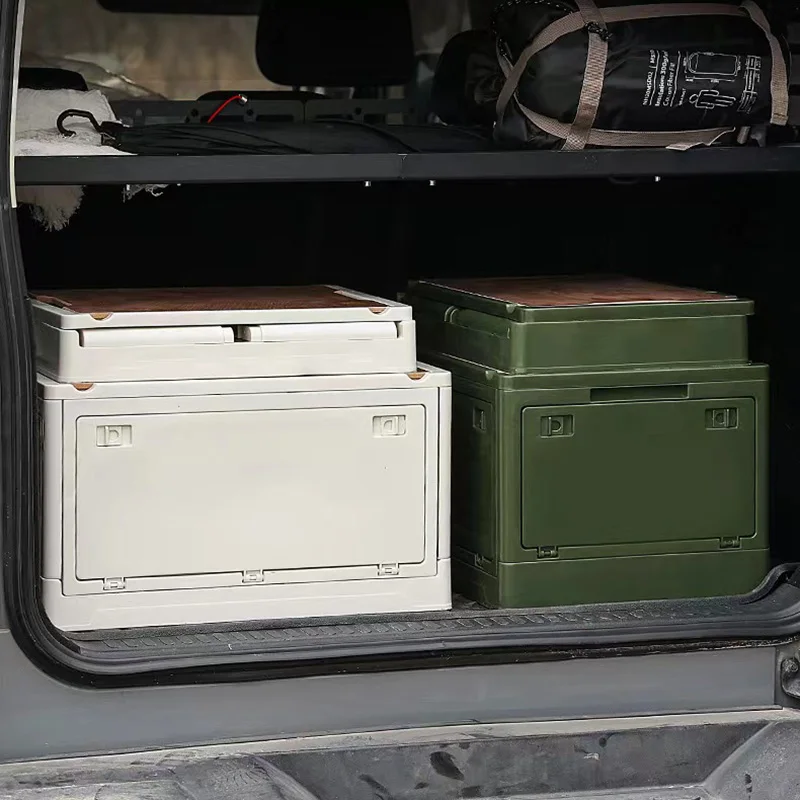 2. Diseño plegable y portátil: nuestra caja organizadora para acampar se puede plegar fácilmente, lo que la hace muy portátil y cómoda de llevar. Ya sea que esté haciendo senderismo, acampando o yendo de viaje por carretera, esta caja se puede empacar y transportar sin esfuerzo, lo que le ahorra un valioso espacio y esfuerzo.