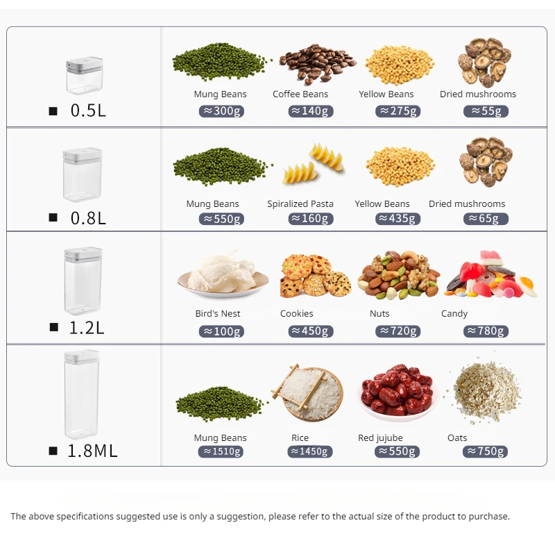 Caja de almacenamiento de alimentos de plástico sellada, tarros secos de cereales y dulces con tapa, contenedores de almacenamiento para nevera, artículos para el hogar, organizador de cocina