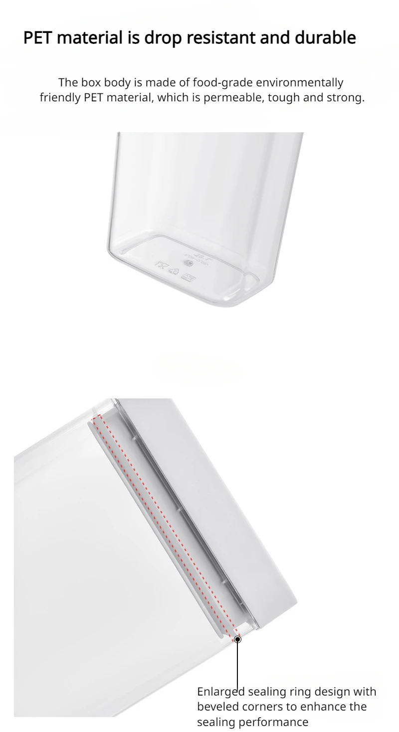 Parámetros de especificación: Nombre del producto: latas de sellado de botones fáciles Color: como se muestra en la imagen. Especificaciones aplicables: múltiples especificaciones opcionales/personalizables Material: tapa (PP + silicona), cuerpo de lata de PET Uso del producto: utilizado para almacenar snacks, productos secos, comestibles y otros artículos, frescura sellada. Características del producto: cuerpo de lata transparente, tapa sellada a prueba de fugas, fácil de limpiar. Características del producto: cocina, salón, dormitorio. Rango de temperatura: -30 ° C ~ 60 ° C