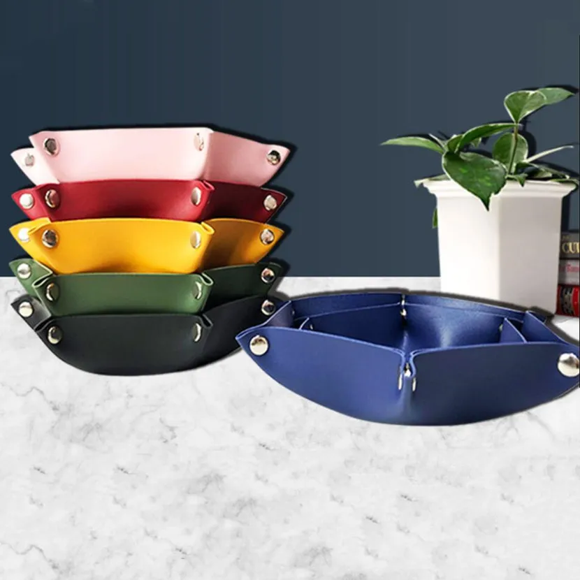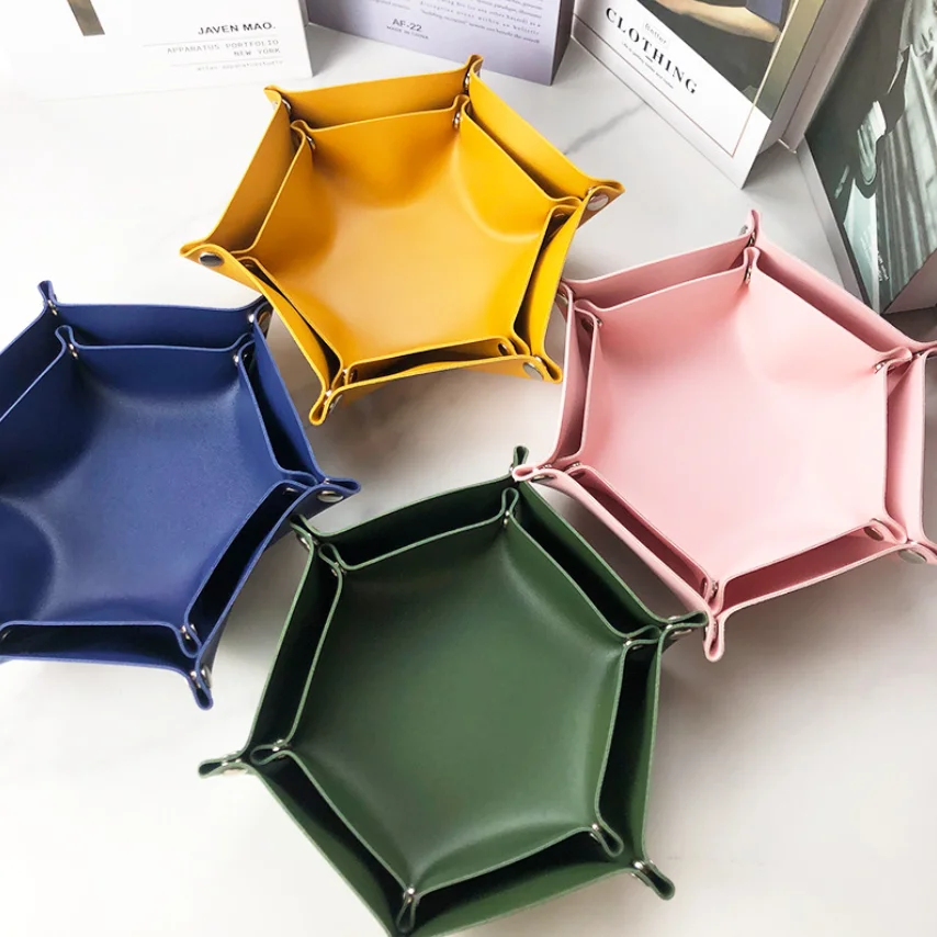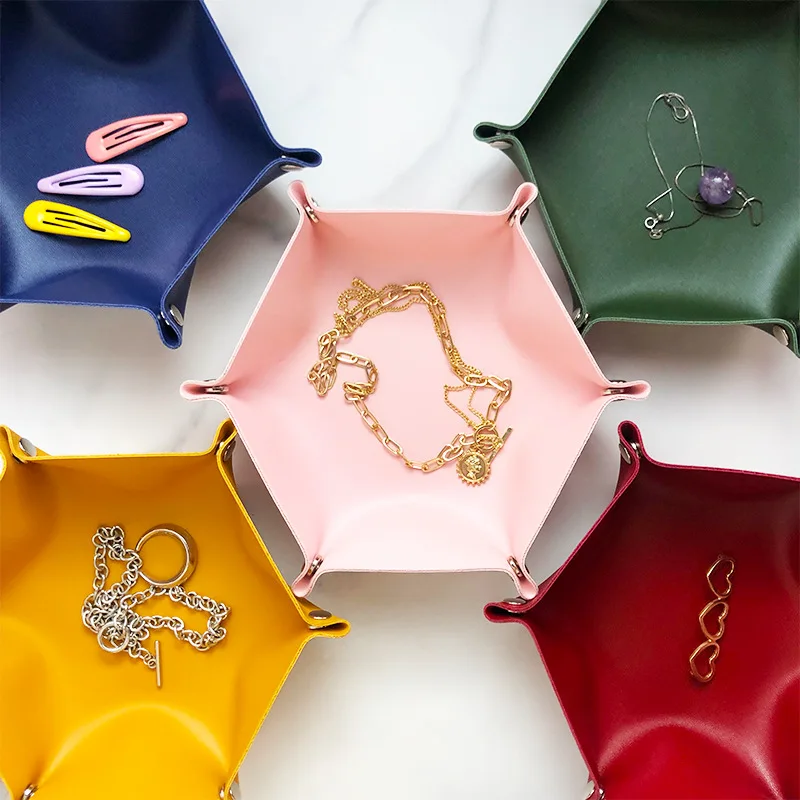 Caja de almacenamiento de cuero Hexagonal, bandeja de dados plegable, caja de cuero PU, bandeja cuadrada de monedas hexagonal plegable, juego de dados, magia, reunión