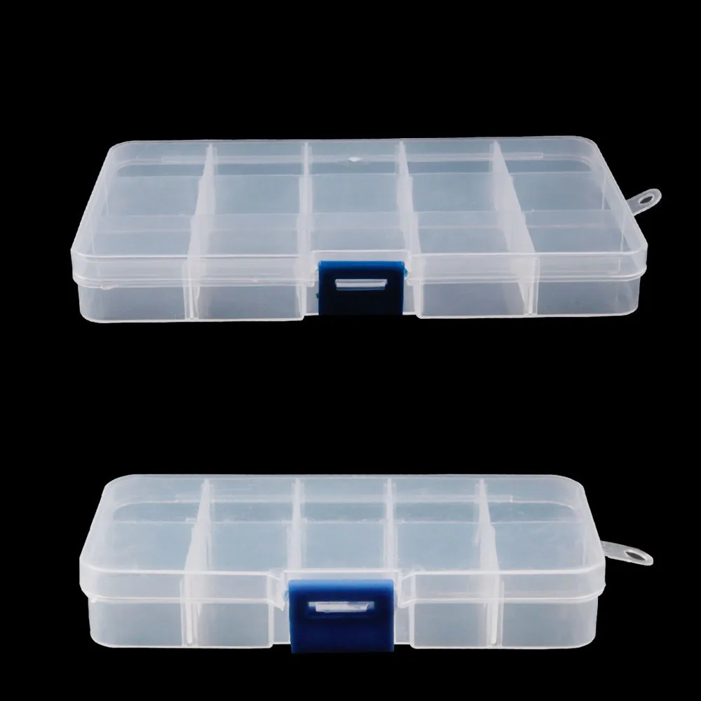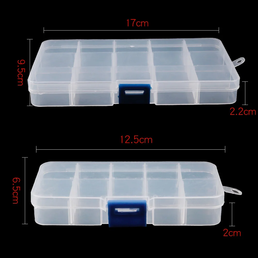 Caja de almacenamiento de pesca con 10/15 compartimentos, caja cuadrada de plástico, señuelo de pesca con mosca, cuchara, anzuelo, caja de aparejos de cebo, accesorios para anzuelos