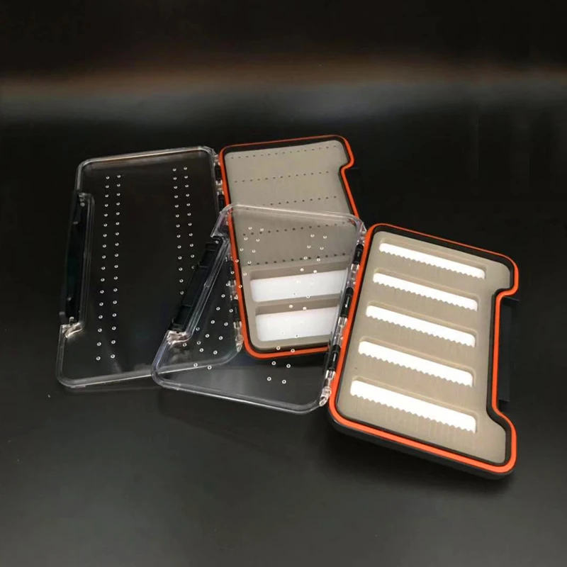 Caja de mosca transparente delgada tipo bolsillo de tamaño pequeño/grande cajas de pesca con mosca de un lado fuertes y duraderas caja de almacenamiento de moscas de plástico ABS