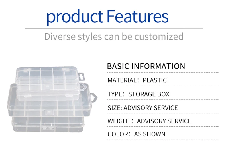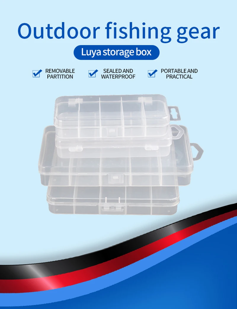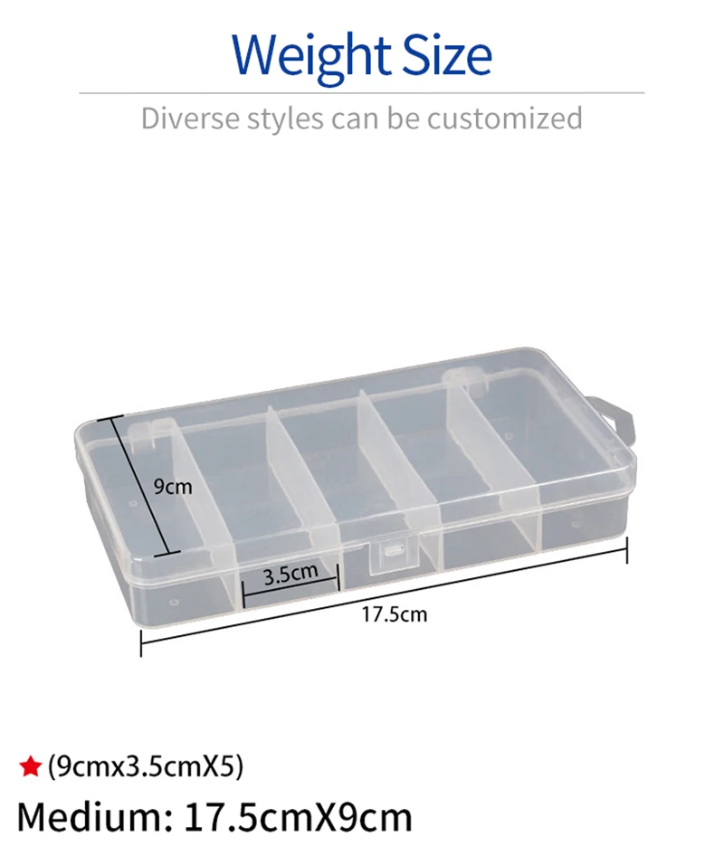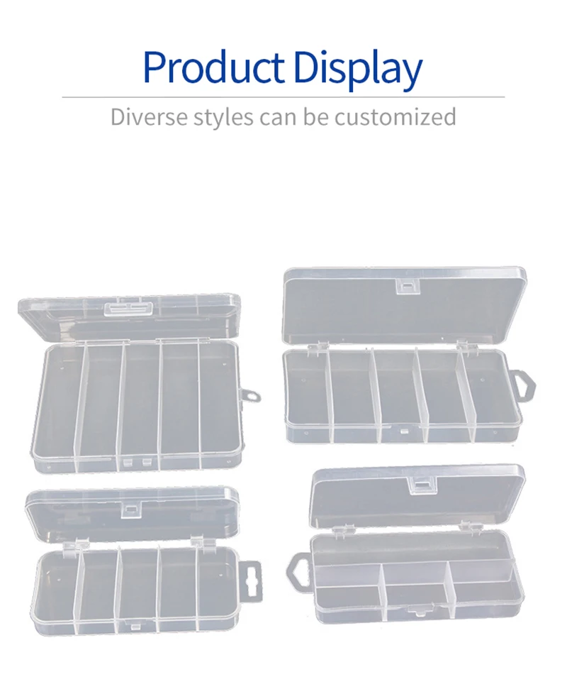Caja de almacenamiento de plástico para anzuelos de pesca, caja cuadrada para accesorios, aparejos de pesca al aire libre, 5 compartimentos