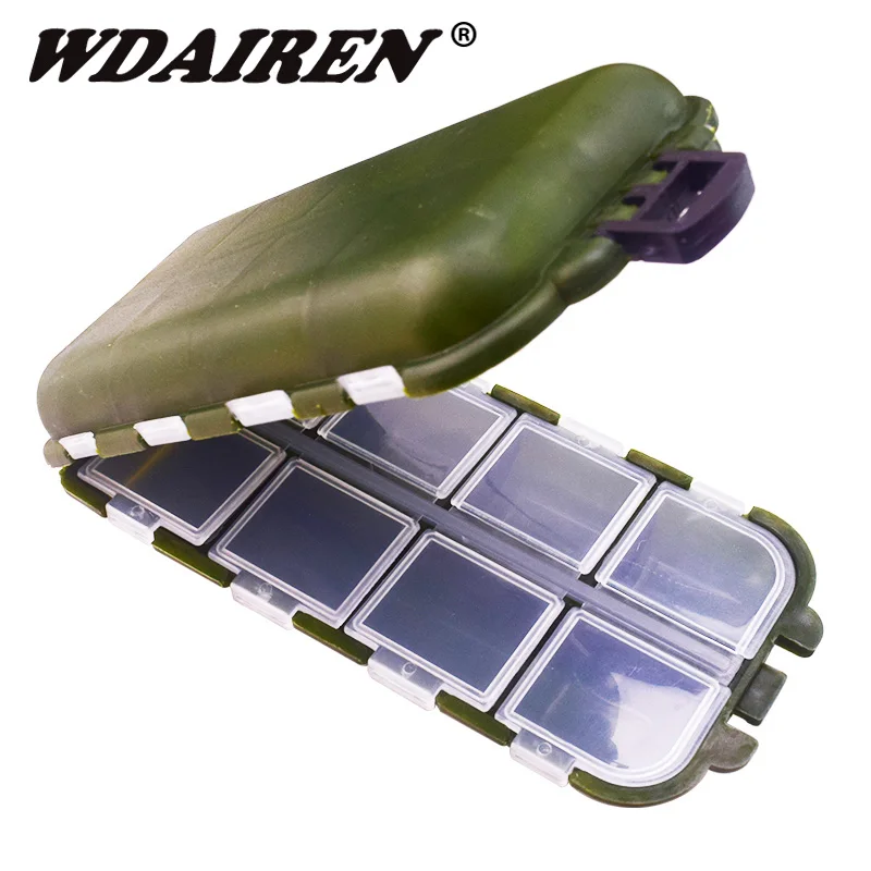 Caja de almacenamiento de 10 compartimentos, caja de plástico para señuelo de pesca, cuchara, gancho, caja de aparejos de cebo, pequeños accesorios, tijeras, caja cuadrada de anzuelo
