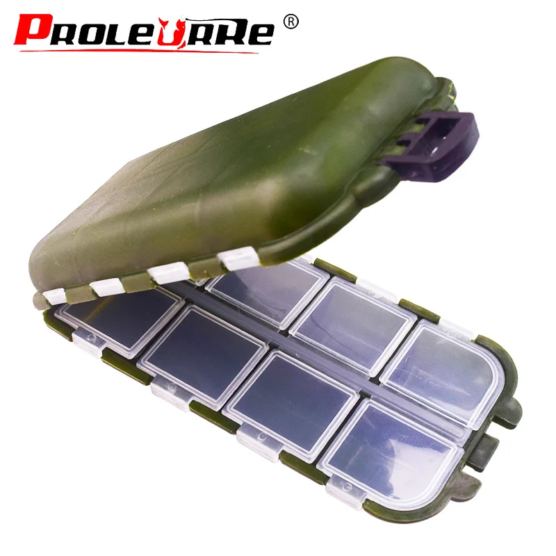 Caja de almacenamiento de 10 compartimentos, caja de plástico para Señuelos de Pesca, cuchara, anzuelo, cebo, caja de aparejos, tijeras pequeñas, accesorio, caja de anzuelo cuadrado