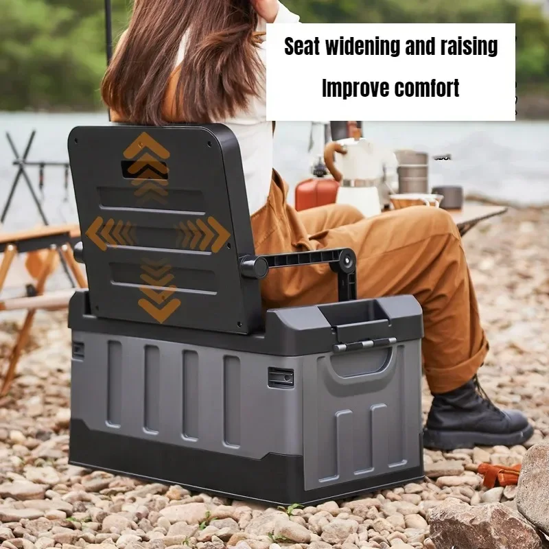 Caja de almacenamiento plegable grande, caja de almacenamiento portátil para asiento de camping al aire libre, caja de almacenamiento de equipaje gruesa, caja de pesca, respaldo
