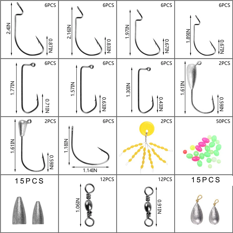 Cantidad: 158 Uds. Paquete: caja de plástico Material: Gancho de plantilla de acero con alto contenido de carbono, plomo plomado, cuentas de pesca de plástico, parada flotante de silicona Características: Ganchos de plantilla de varios tamaños mezclados, más opciones Aparejos esenciales Texas rigs Paquete de caja de plástico, fácil de llevar Aviso: La medición puede tener algunos errores, por favor no se preocupe. Gracias