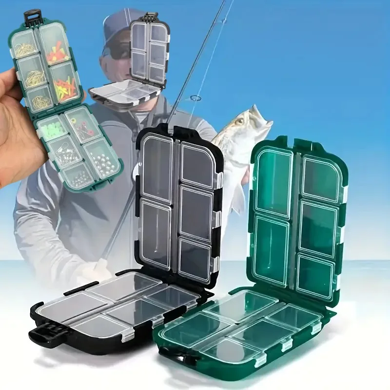 Caja de aparejos de pesca con 10 compartimentos, caja de almacenamiento para anzuelos y señuelos de pesca, organizador de herramientas y accesorios