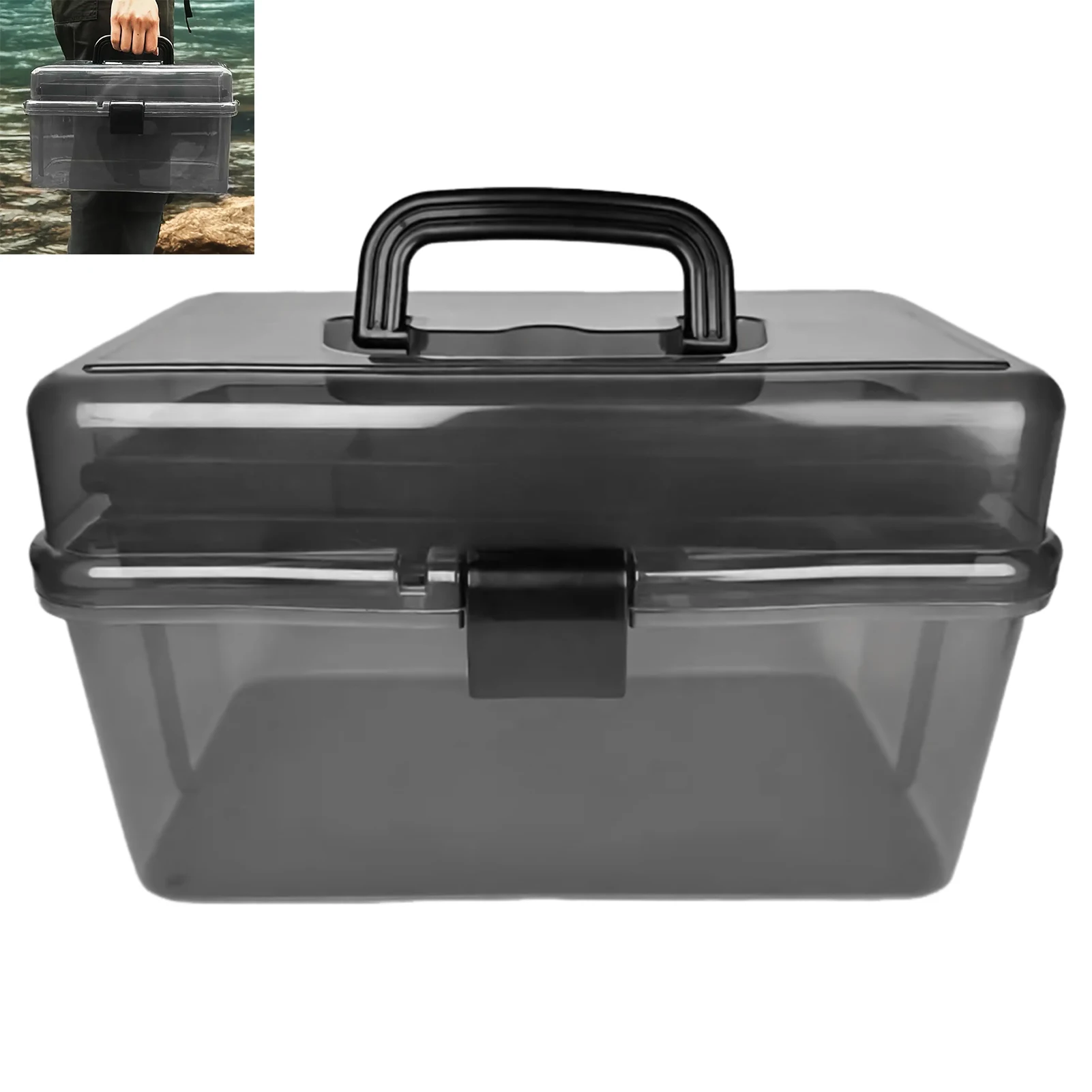 1 * caja transparente de aparejos de pesca de 3 capas