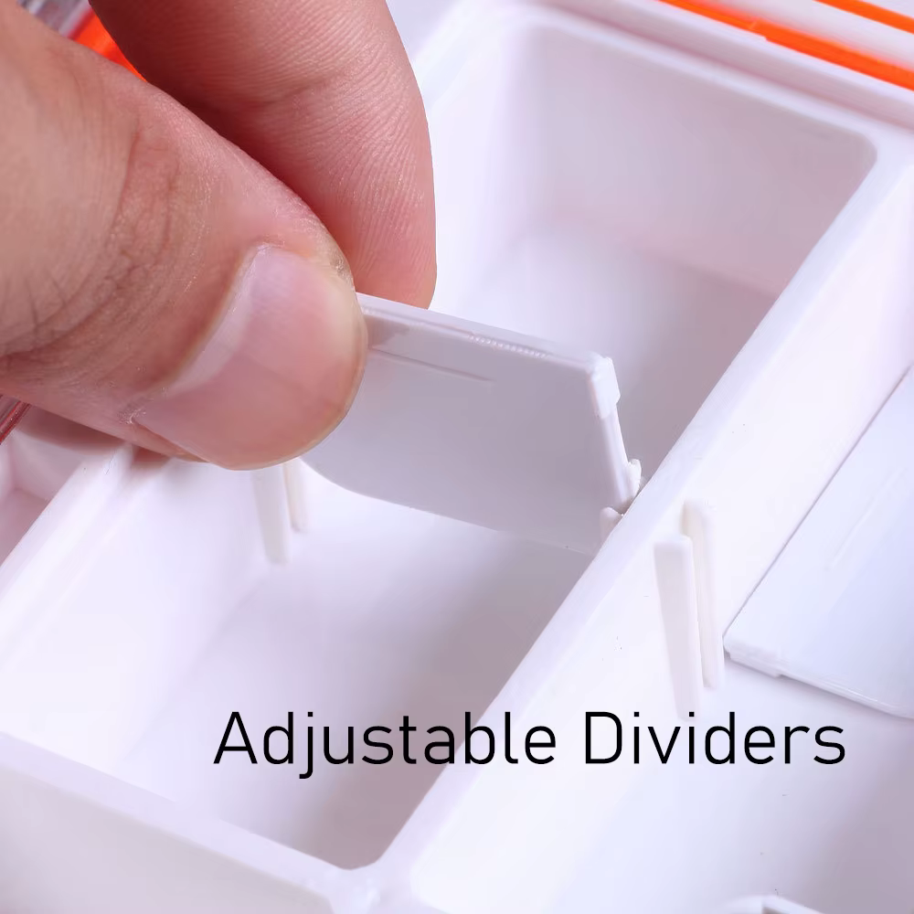 2. Divisores ajustables: el organizador de aparejos tiene divisores ajustables que permiten al pescador crear un ajuste personalizado para todos los tamaños de señuelos.