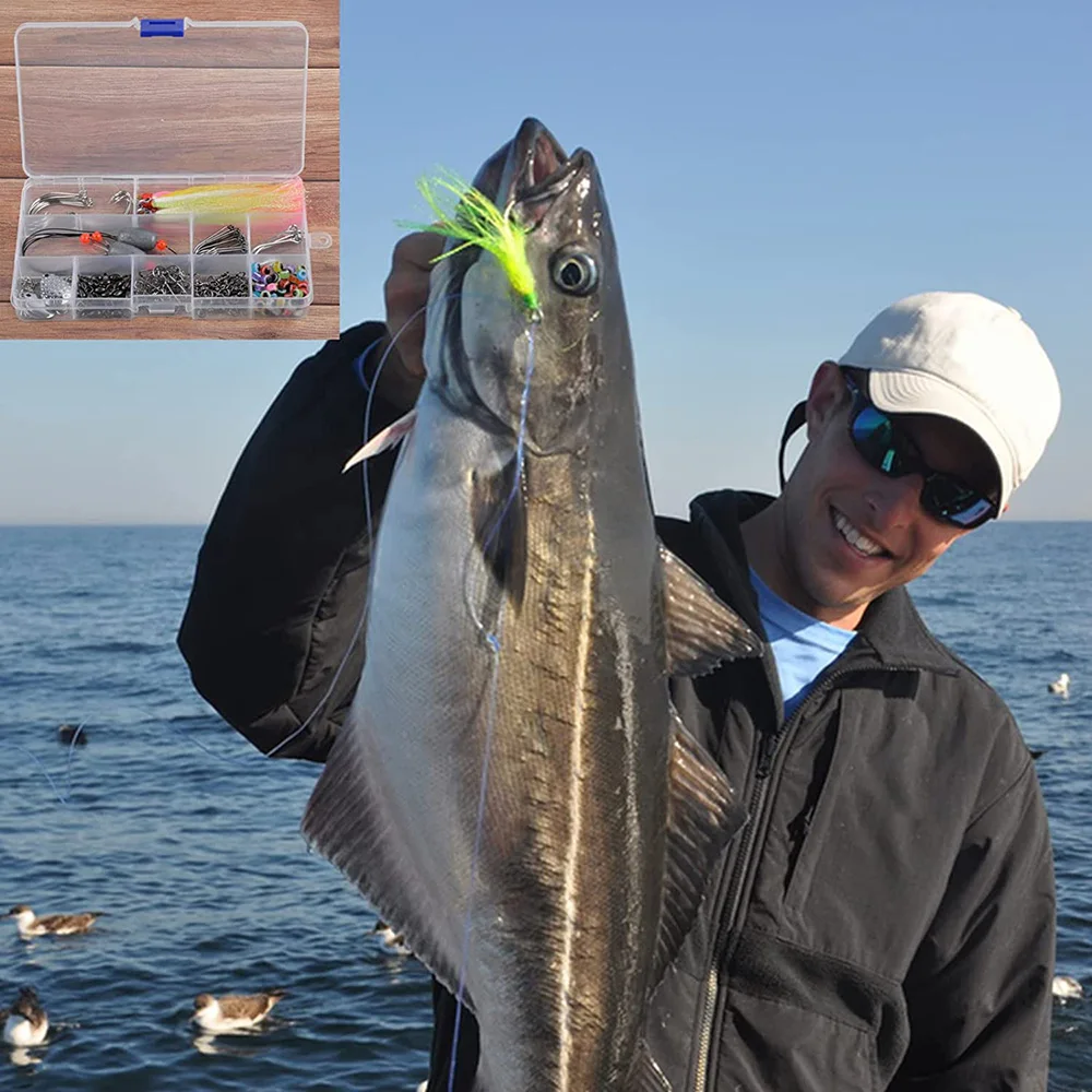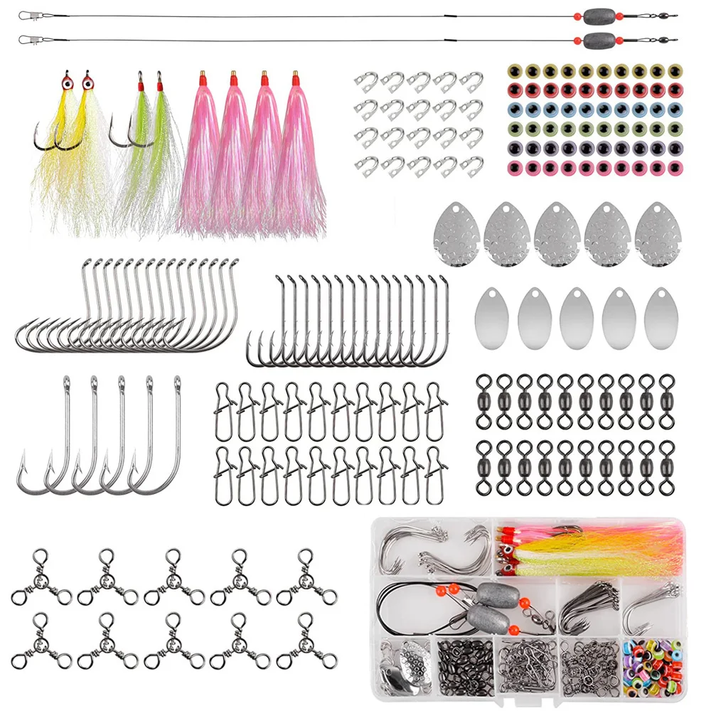Caja de aparejos de pesca de agua salada de 185 piezas, aparejos de pesca de Fluke Flounder, cuchillas de sauce, Buckle tail Mylar, accesorios para hacer señuelos DIY